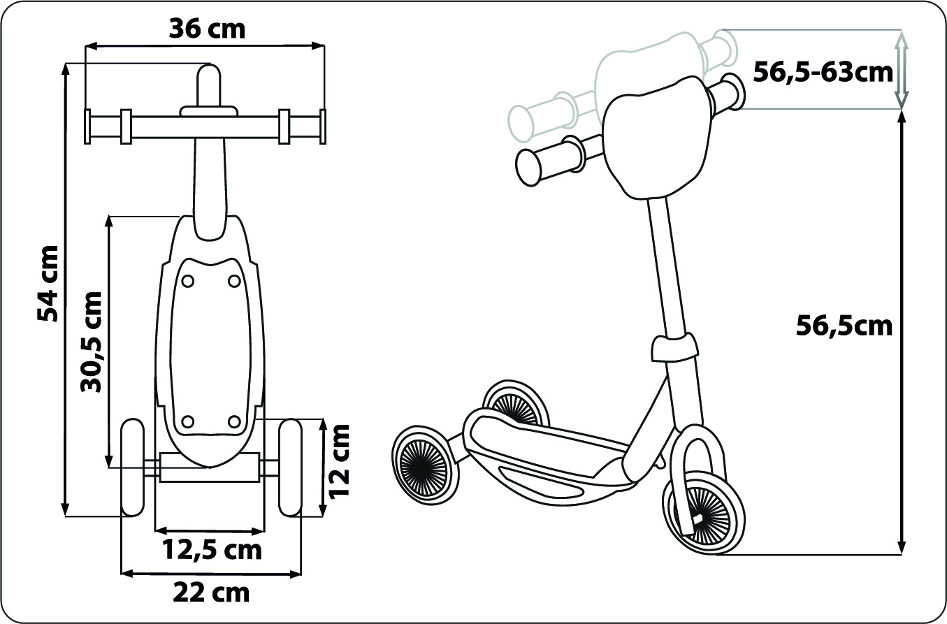 Tříkolová koloběžka Baby byla navržena pro nejmenší děti, které začínají jezdit venku. Jeho široký, zesílený podstavec s protiskluzovým povrchem zaručuje stabilitu při používání. Dvě kola umístěná na zadní části koloběžky zajišťují bezpečnost a lepší ovládání vozidla, zatímco vysoce kvalitní ložiska ABEC-5 zajišťují plynulou a pohodlnou jízdu. Díky regulovatelným řídítkům lze koloběžku přizpůsobit výšce dítěte.