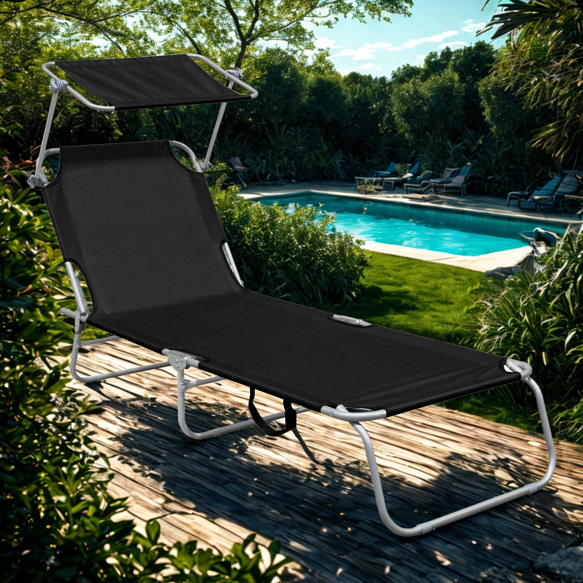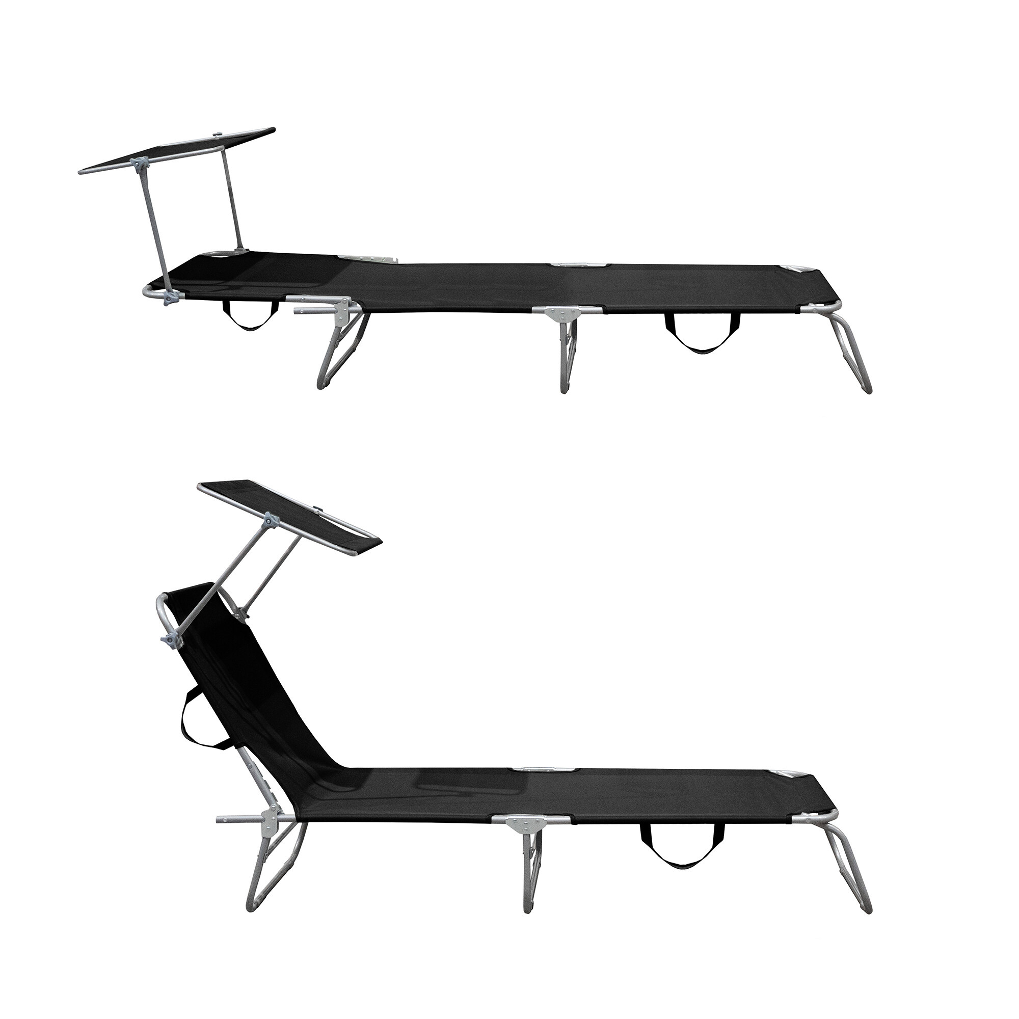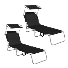 Aga 2x Záhradné polohovacie lehátko so strieškou Čierne