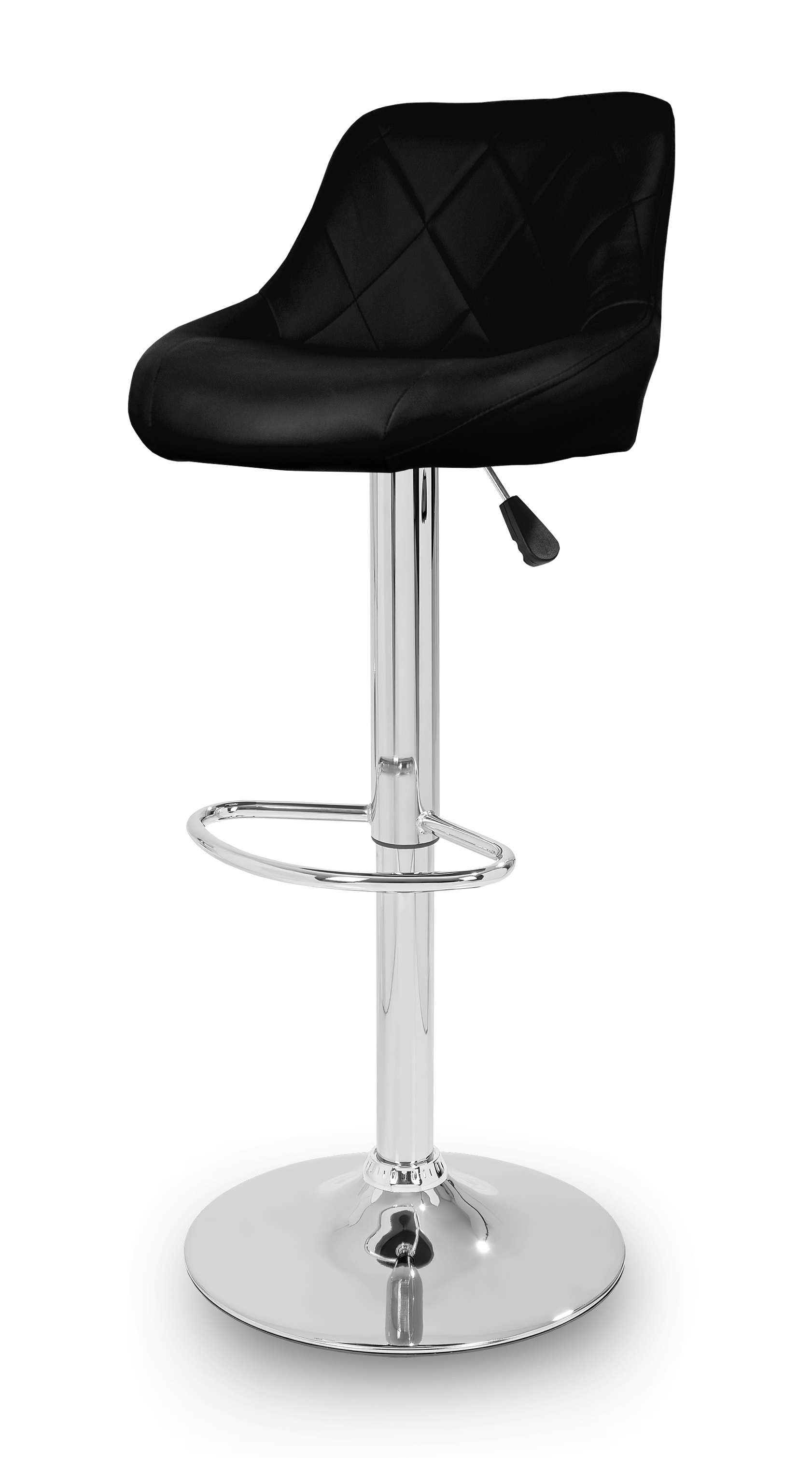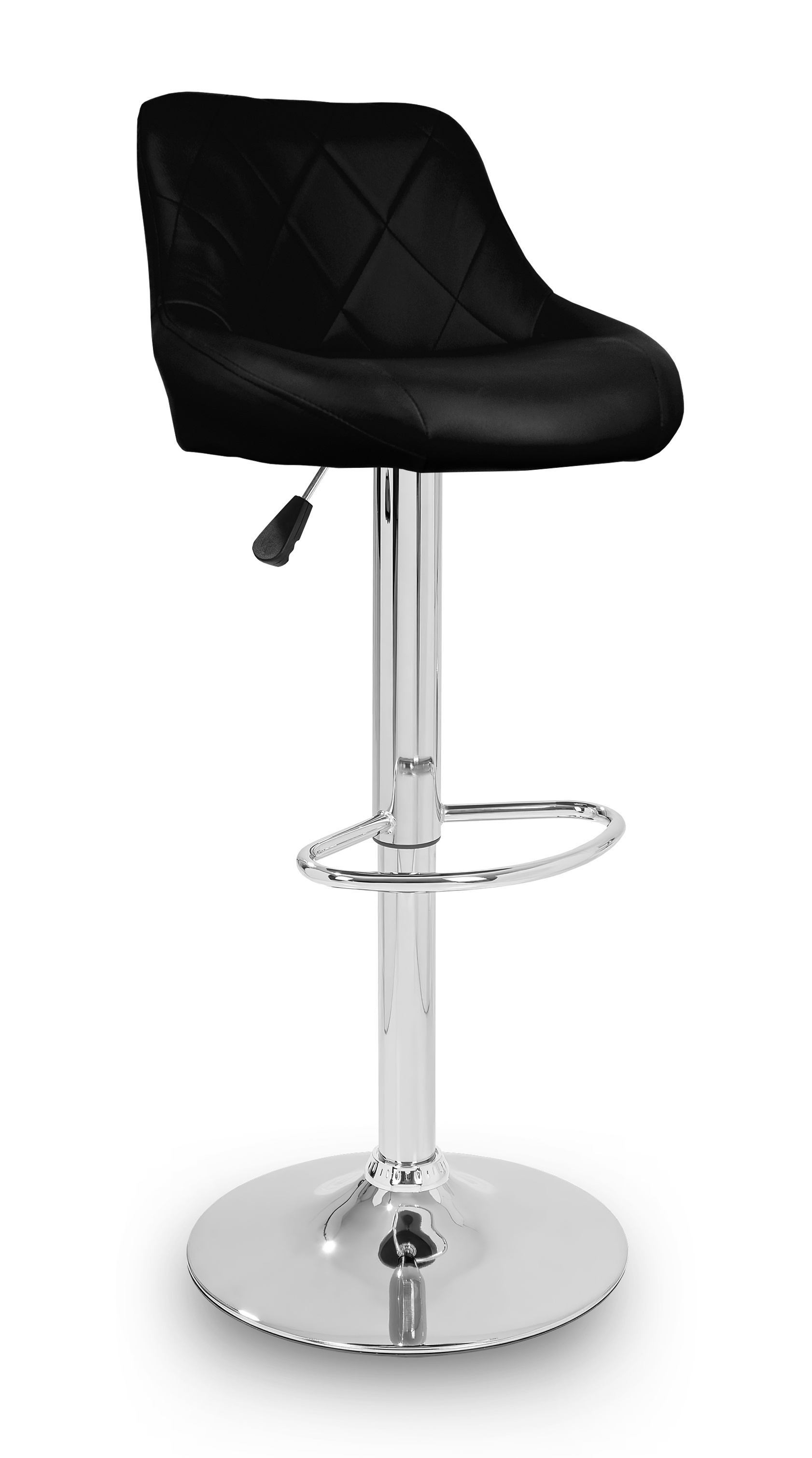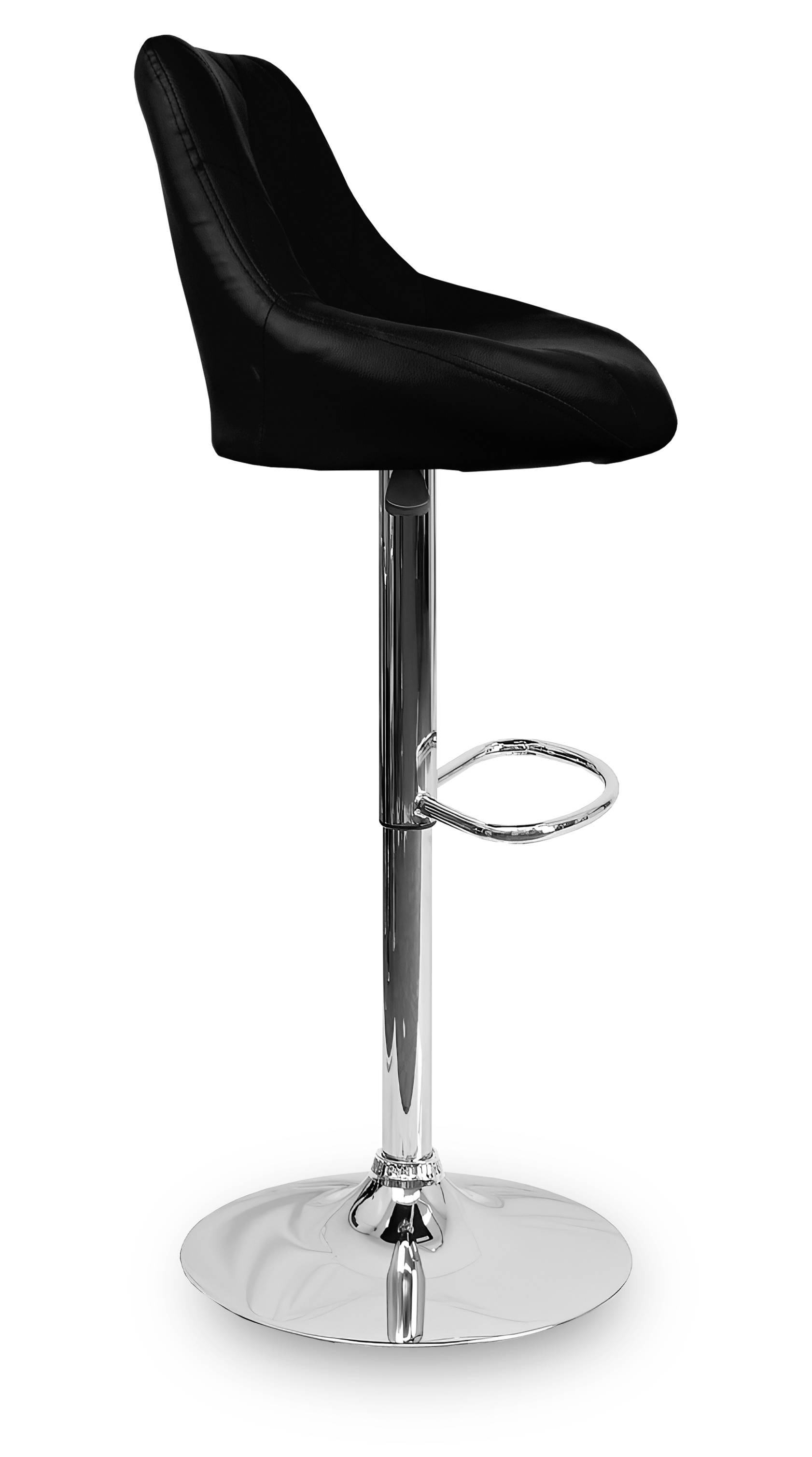 Stolička má praktickú podnožku z pochrómovaného kovu. Kruhová základňa a stredová noha sú vyrobené z chrómu v lesklej farbe.