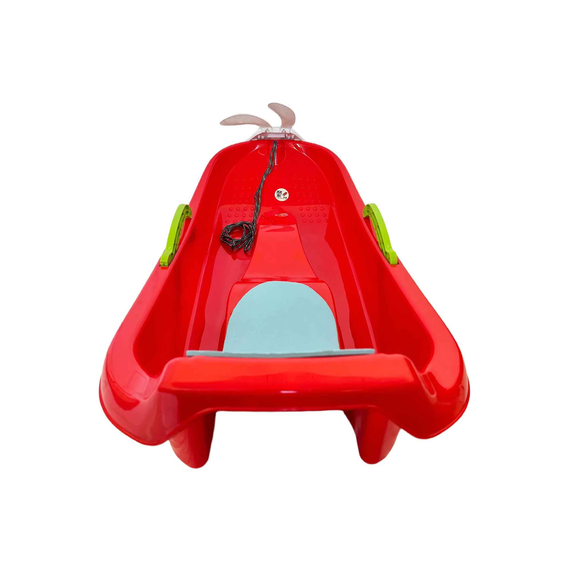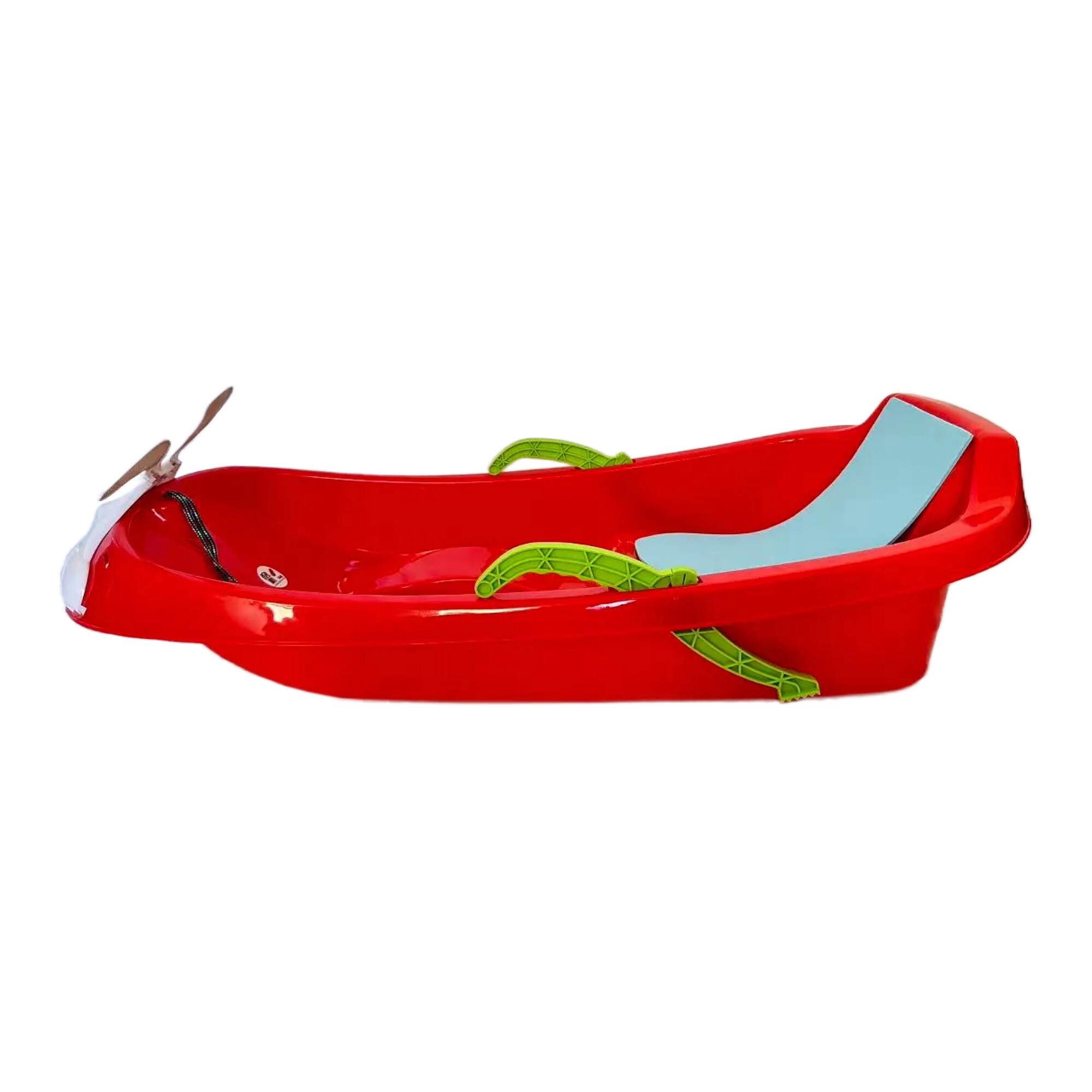 Konštrukcia je vyrobená z vysoko kvalitného, mrazuvzdorného plastu, ktorý si drží tvar a pevnosť aj pri nízkych teplotách. Sedák je ergonomicky tvarovaný a doplnený o pohodlnú opierku chrbta, takže deti sedia stabilne a v prirodzenej polohe. Dve bočné brzdové páky umožňujú plynulé spomalenie, bezpečné zastavenie aj presné riadenie smeru.