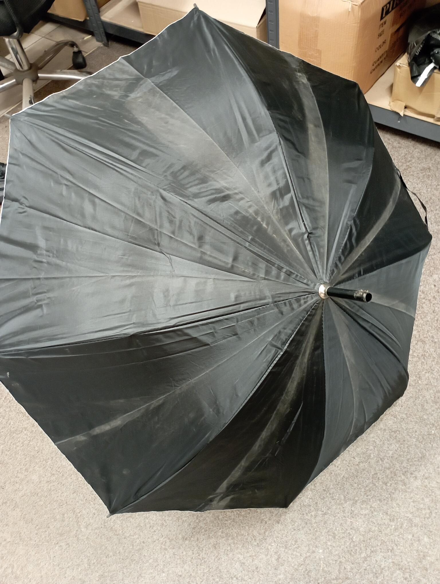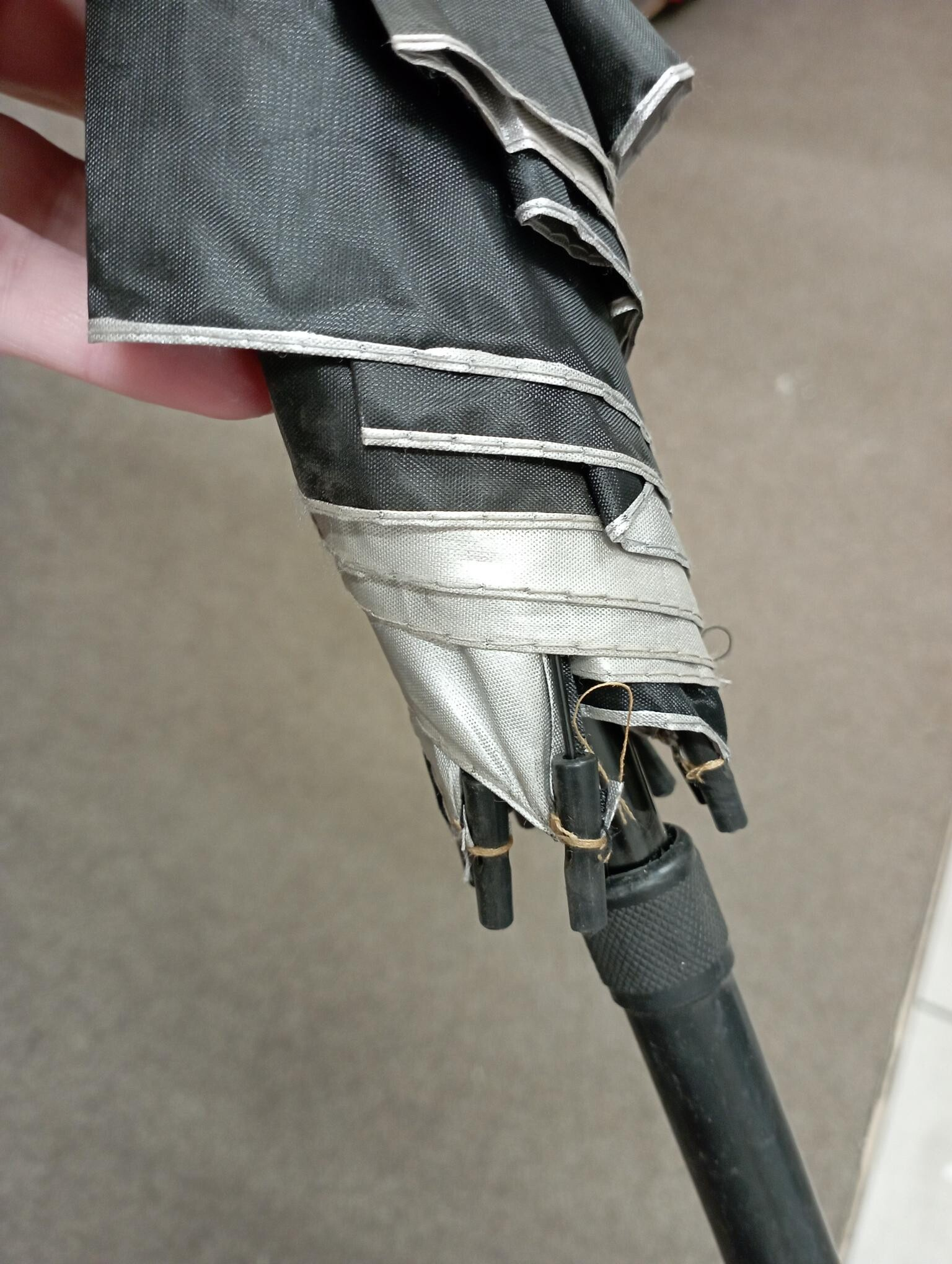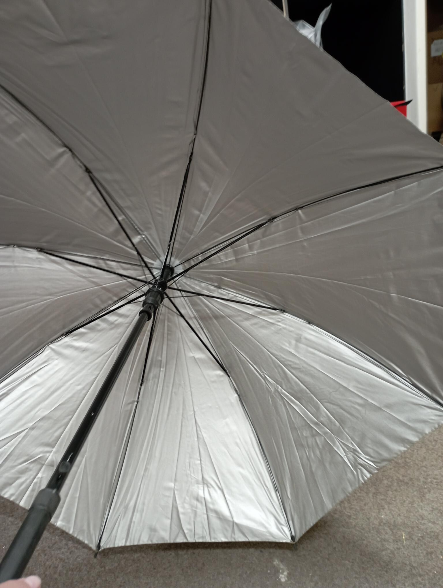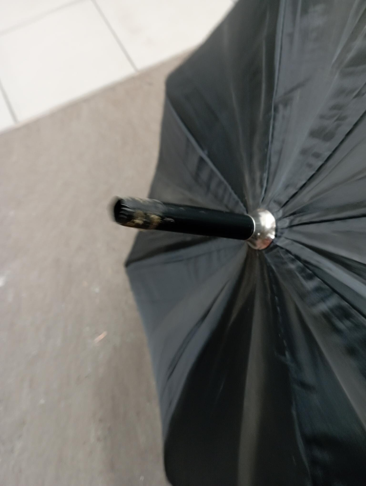 Tento kus je silne špinavý, rukoväť je miestami poškrabaná a chýba zakončenie pri špici. Inak je dáždnik plne funkčný.