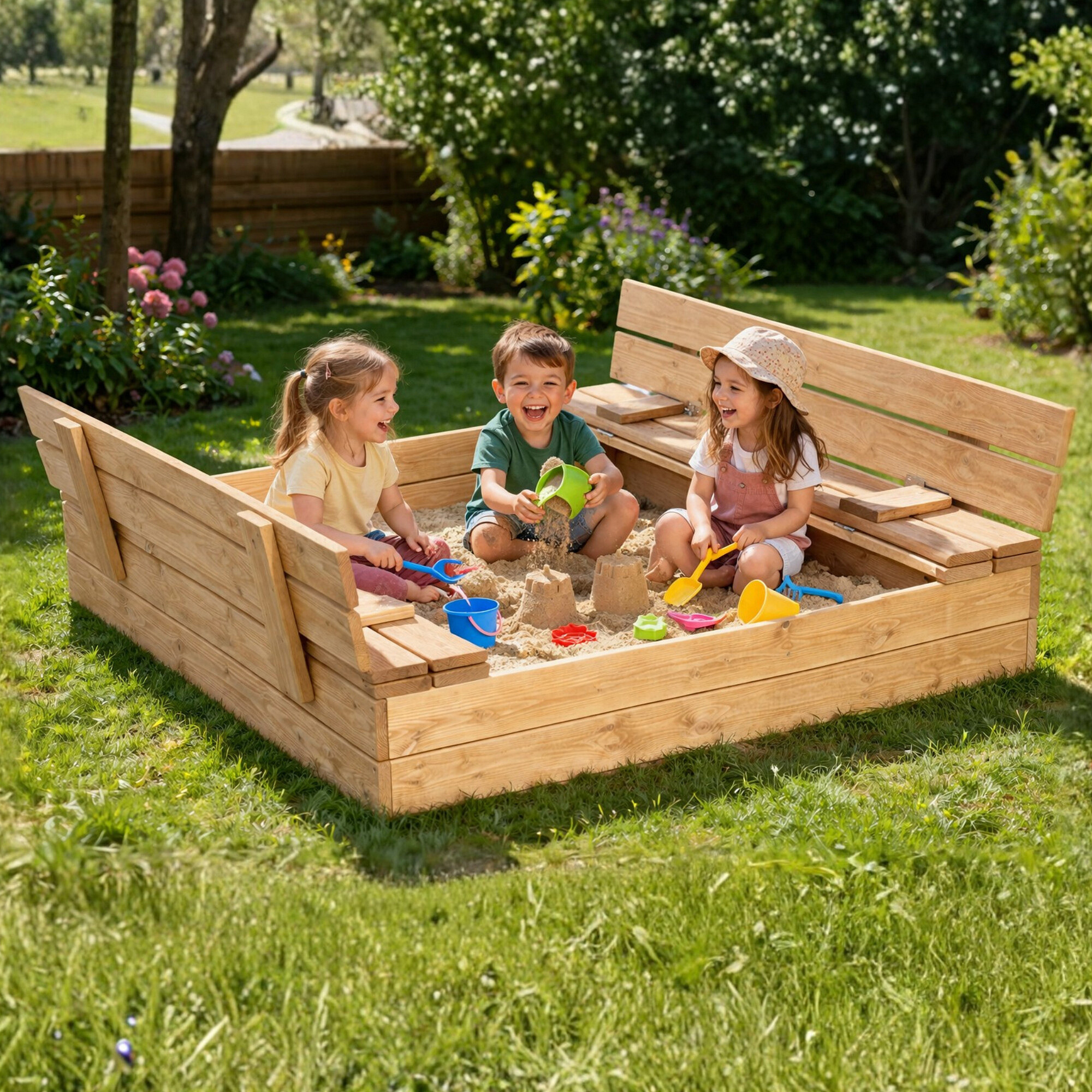 Veľkou výhodou je praktický ochranný poklop, ktorý chráni piesok pred nečistotami, dažďom aj zvieratami. Po otvorení sa poklop ľahko premení na pohodlné lavičky, na ktorých si deti môžu sadnúť počas hry.