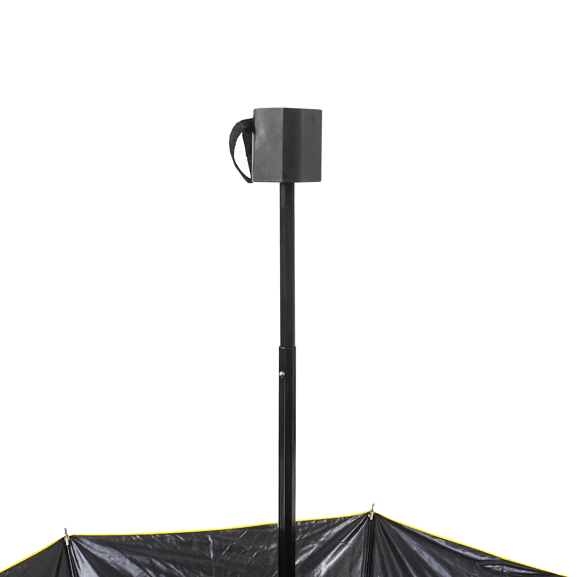 Dáždnik má zaoblené konce a pevnú konštrukciu, ktorá odolá aj silnejšiemu vetru.