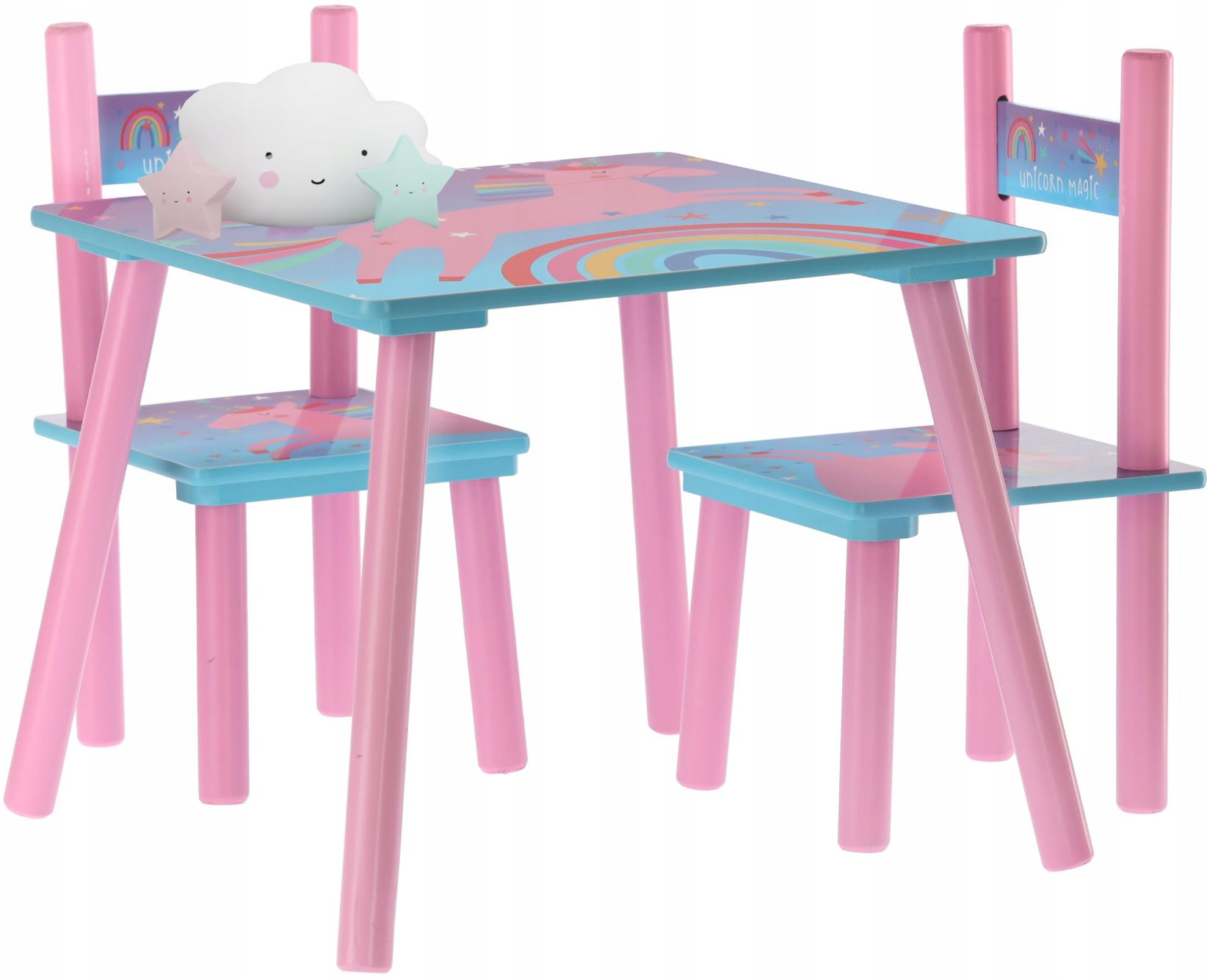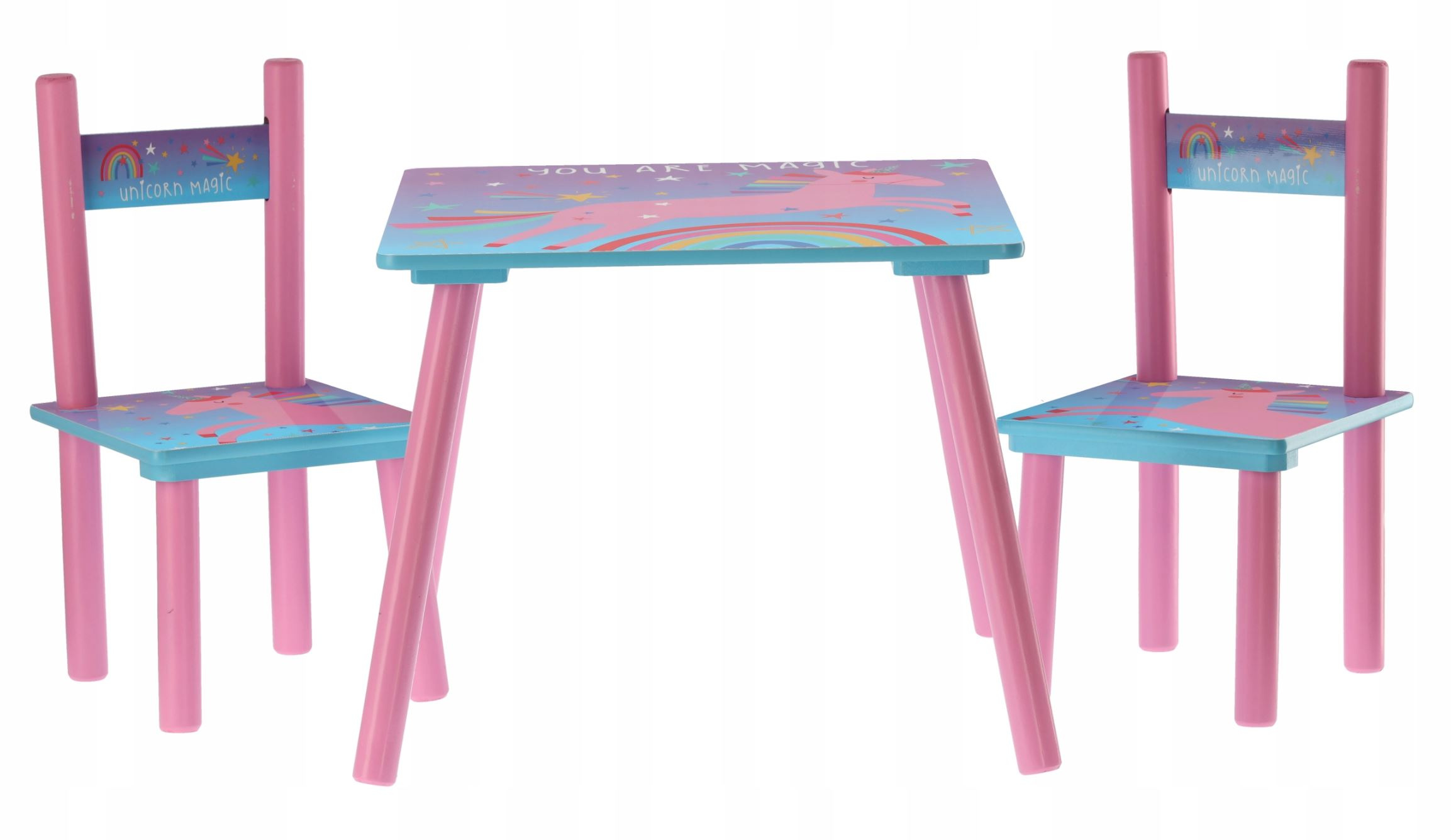 Súčasťou sú aj 2 stoličky. Detský stôl so stoličkami je vyrobený z materiálu MDF a borovicového dreva.