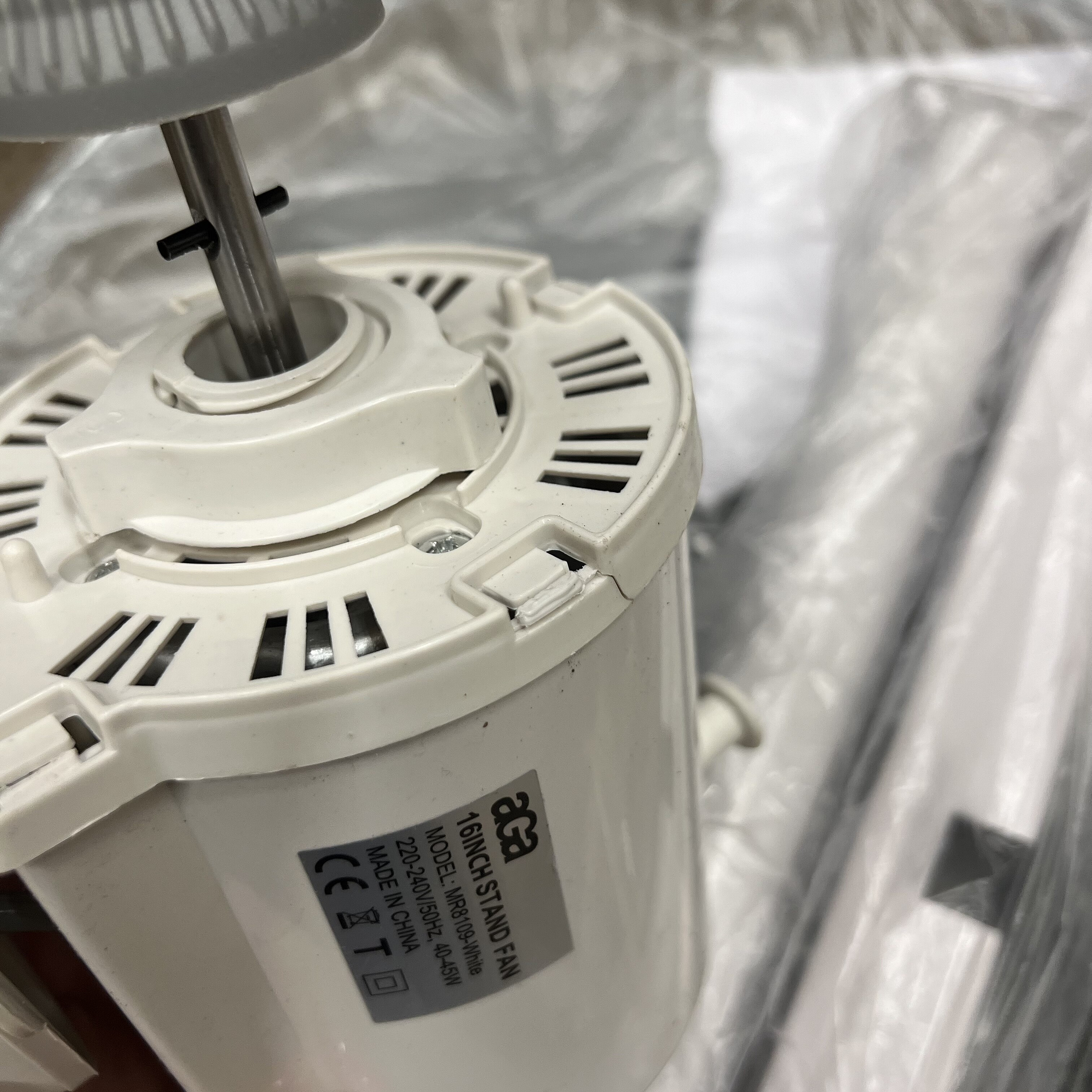 Tento ventilátor je plne funkčný, avšak na jednom mieste má prasknutý kryt a obal pochádza z iného modelu.