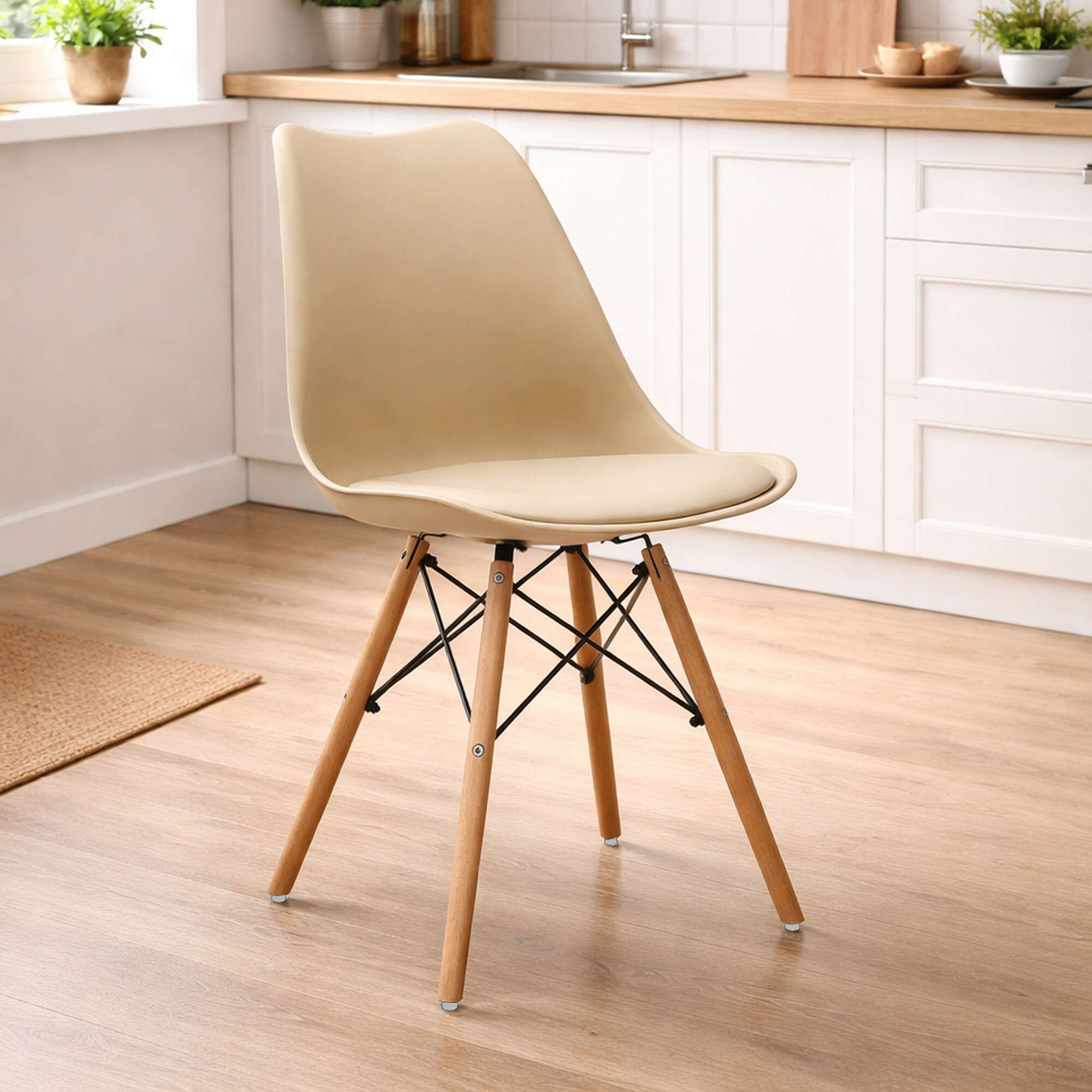 Stolička je vyrobená z kvalitného a odolného polypropylénu s poťahom z umelej kože v kombinácii s podnožou z bukového dreva.