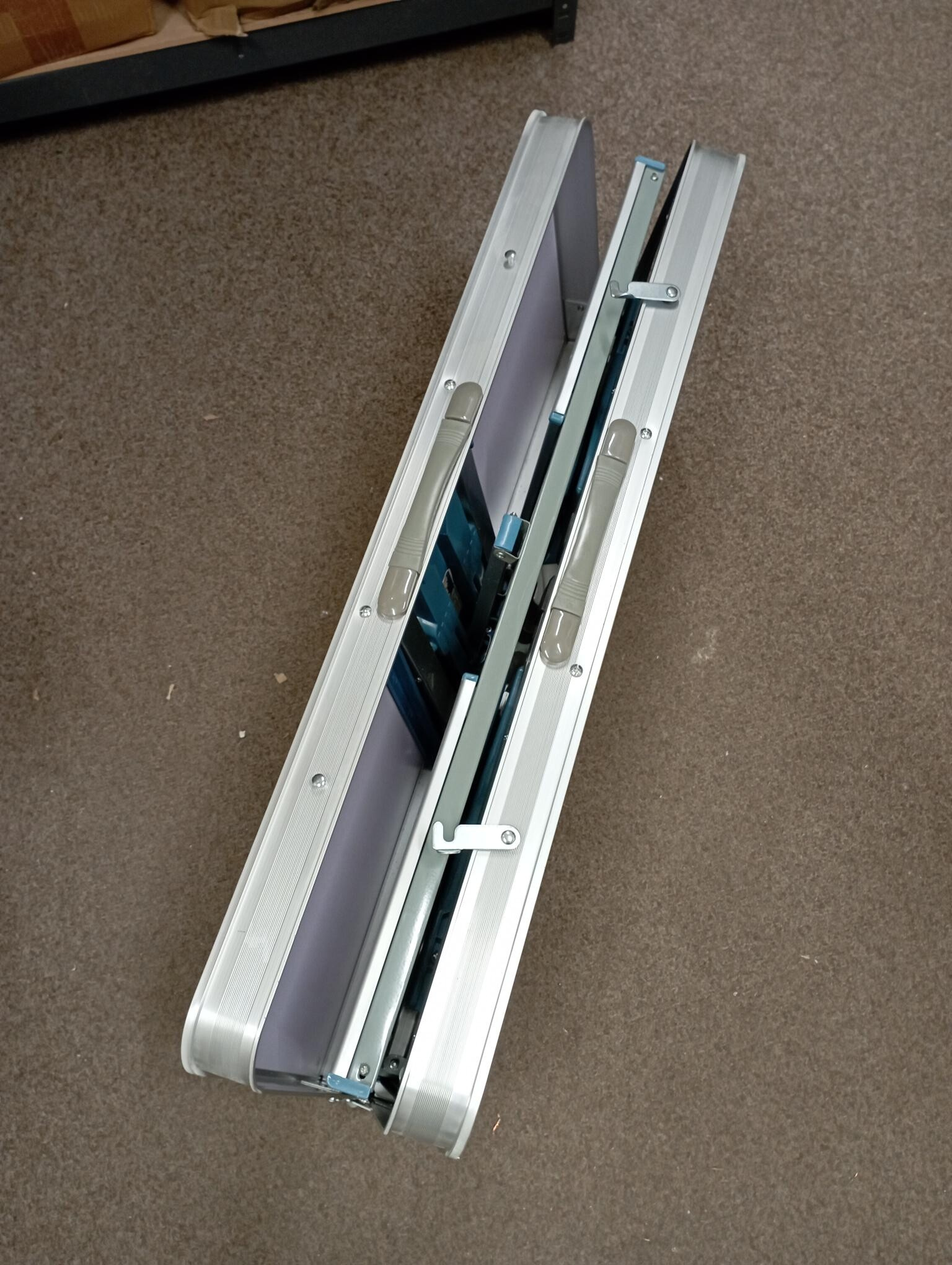 - Pevná, hliníková konštrukcia poskytuje stolu ideálnu stabilitu