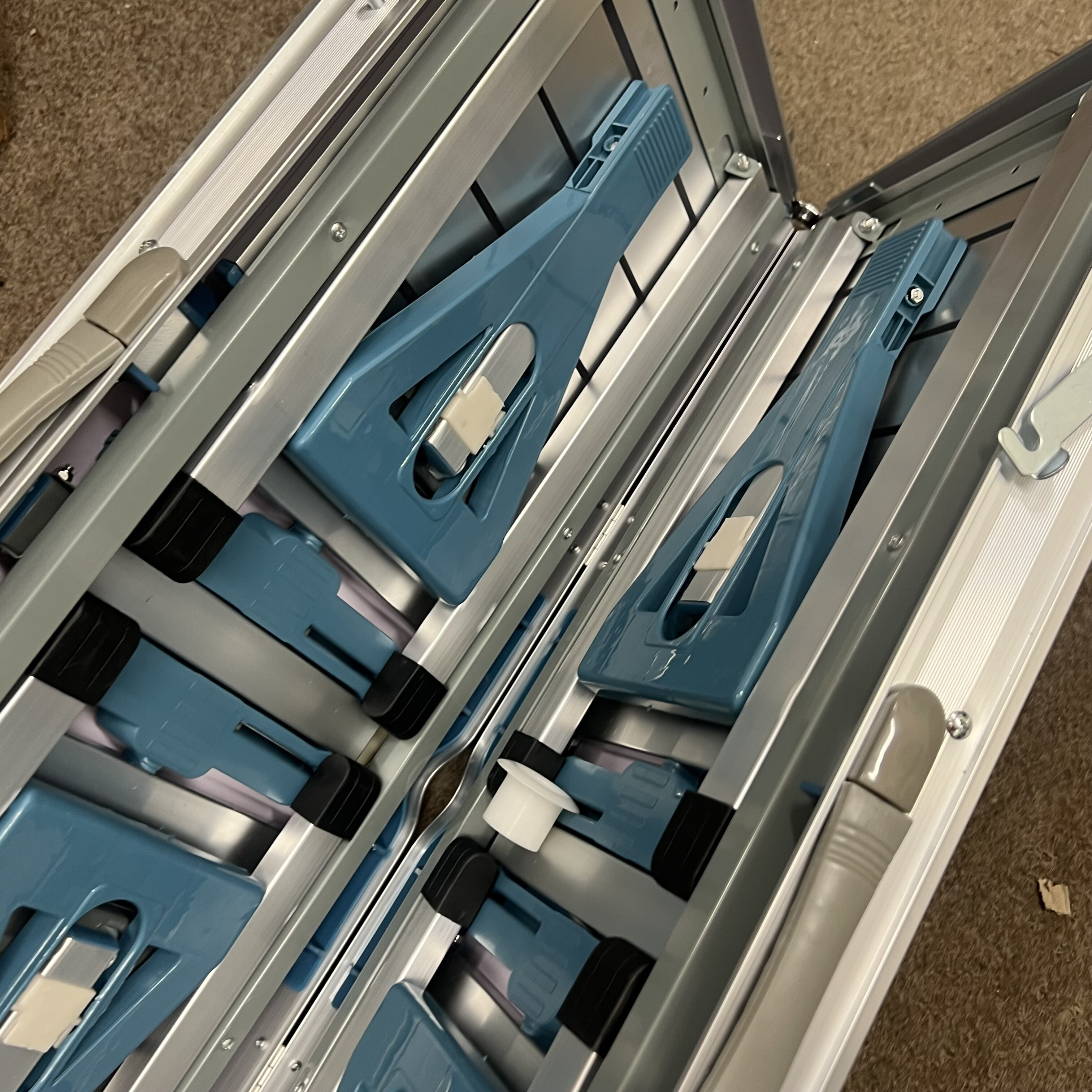 - Pevná, hliníková konštrukcia poskytuje stolu ideálnu stabilitu