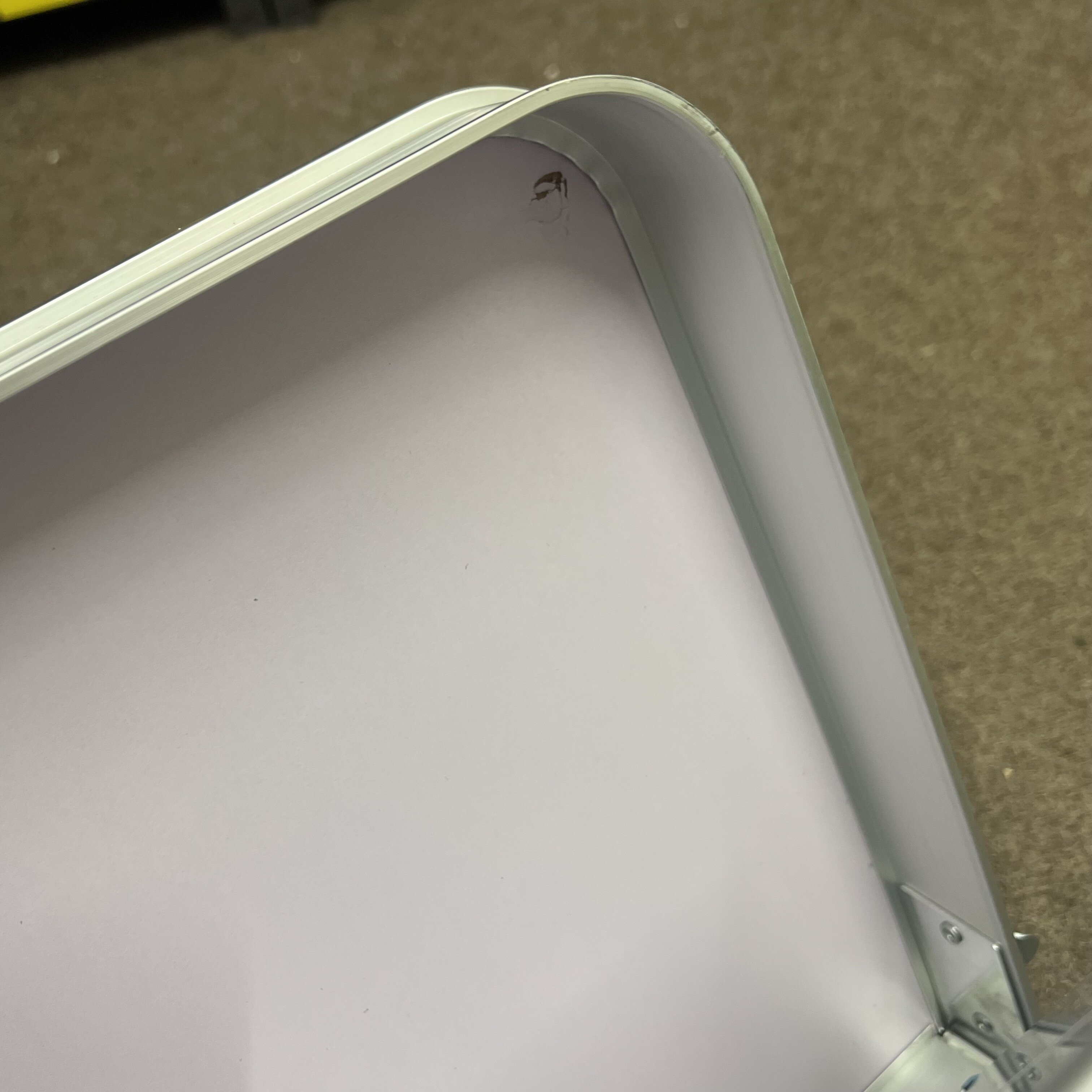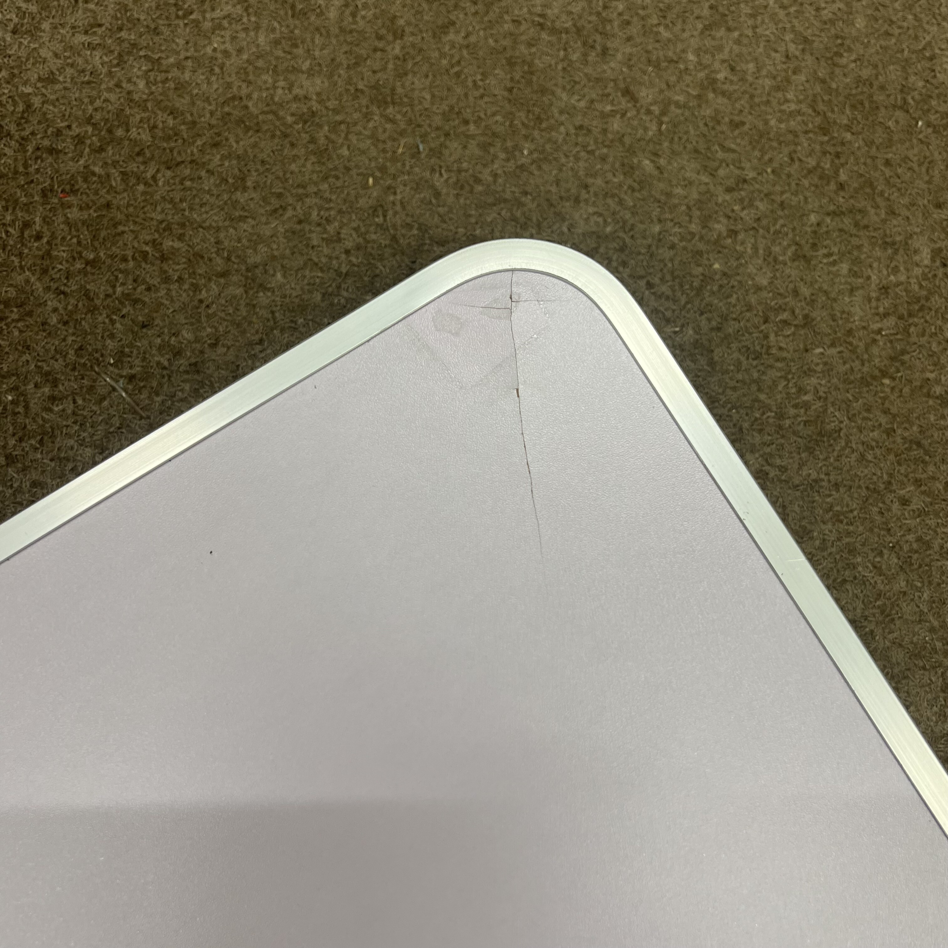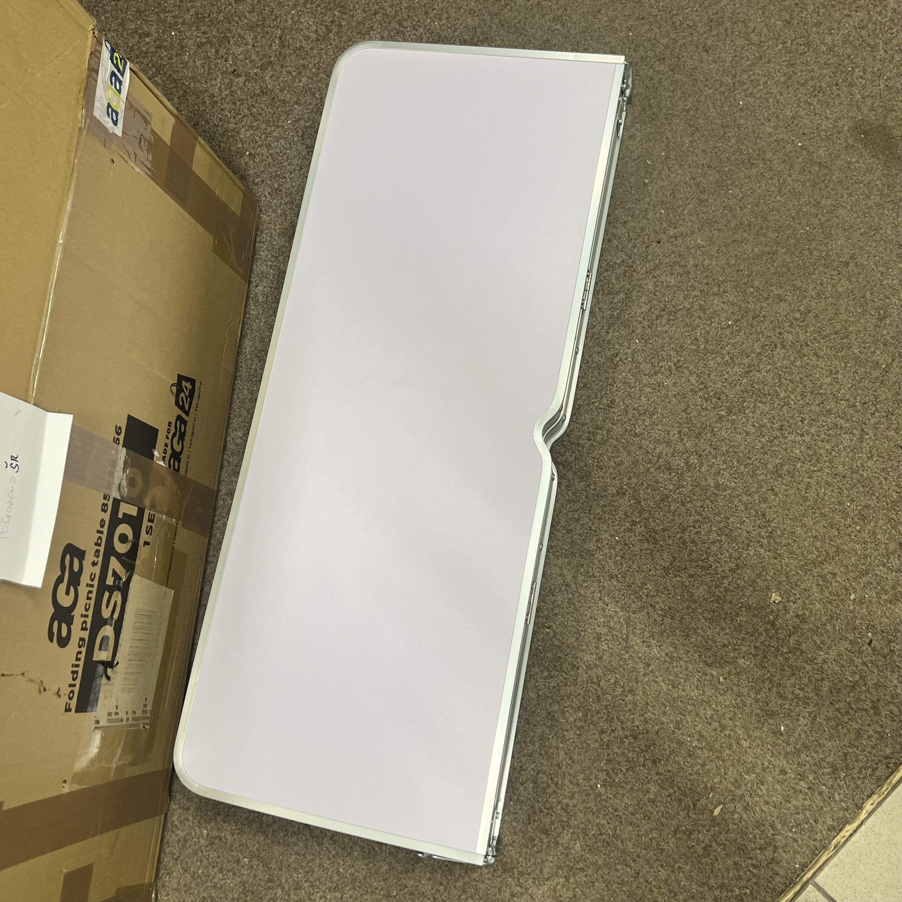 Kempingový stôl má na jednom rohu malú preliačinu.