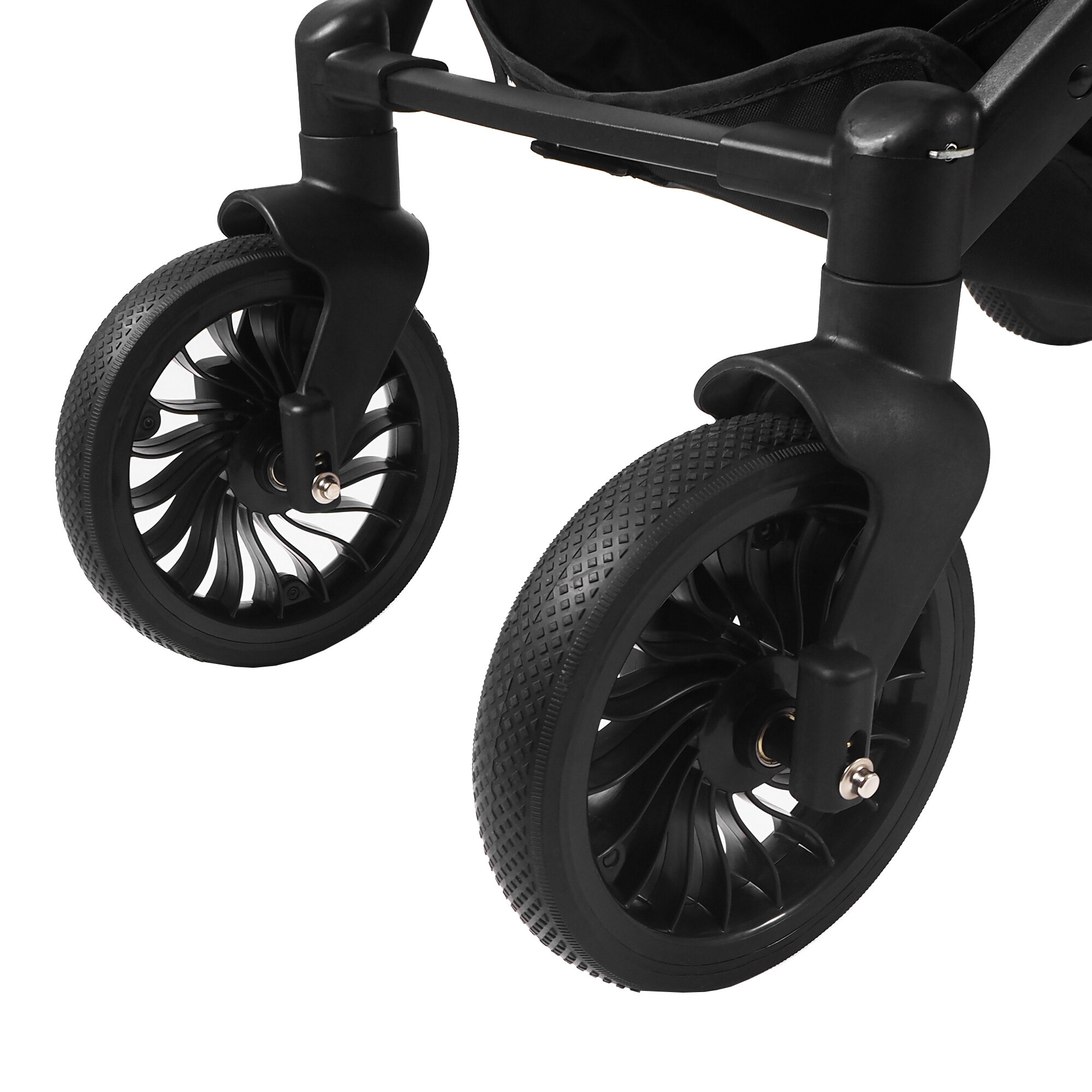 Pre jednoduchú manipuláciu a manévrovateľnosť je kočík vybavený prednými otočnými kolieskami, ktoré sa môžu otáčať o 360 stupňov.