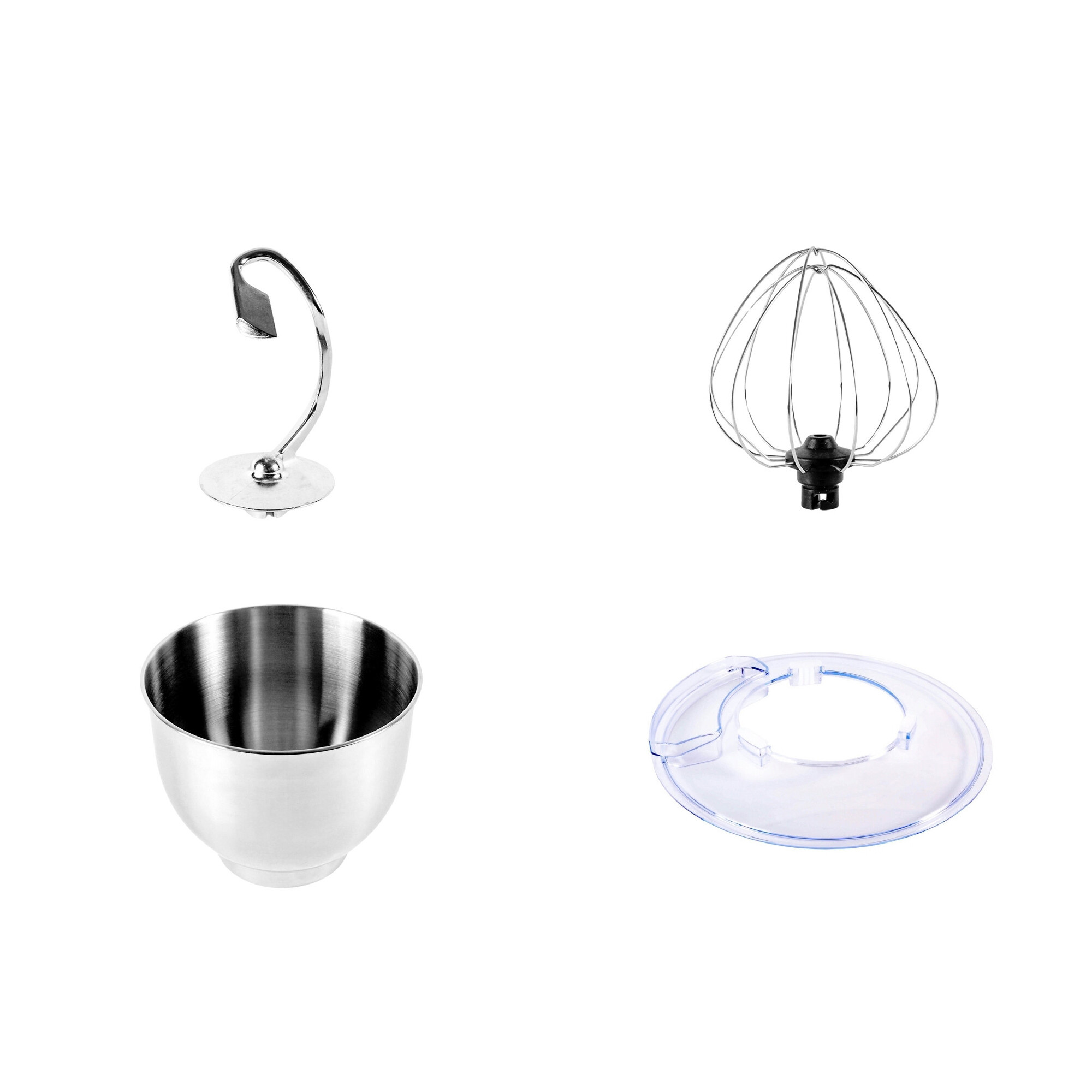 Robot je dodávaný s dvomi základnými nadstavcami: šľahacia metla a hnetací hák. Tieto nadstavce je možné ľahko vymeniť, čo vám umožní rýchlo prejsť z jednej úlohy na druhú. Všetky časti, ktoré prichádzajú do styku s potravinami, sú ľahko umývateľné, čo zaisťuje rýchle a bezproblémové čistenie po každom použití.