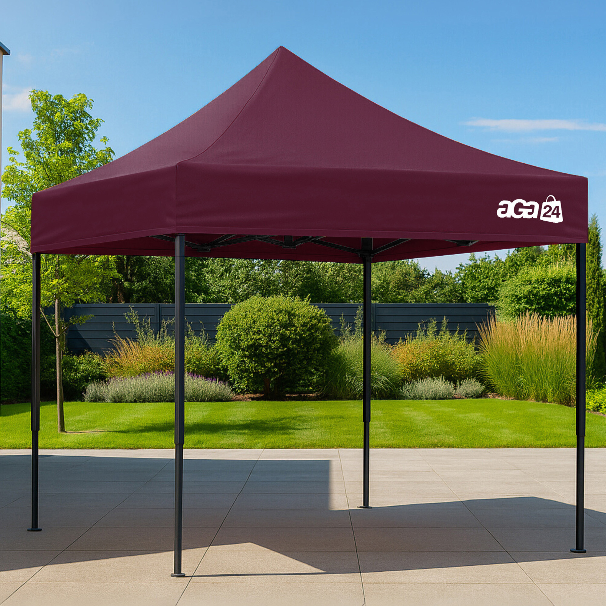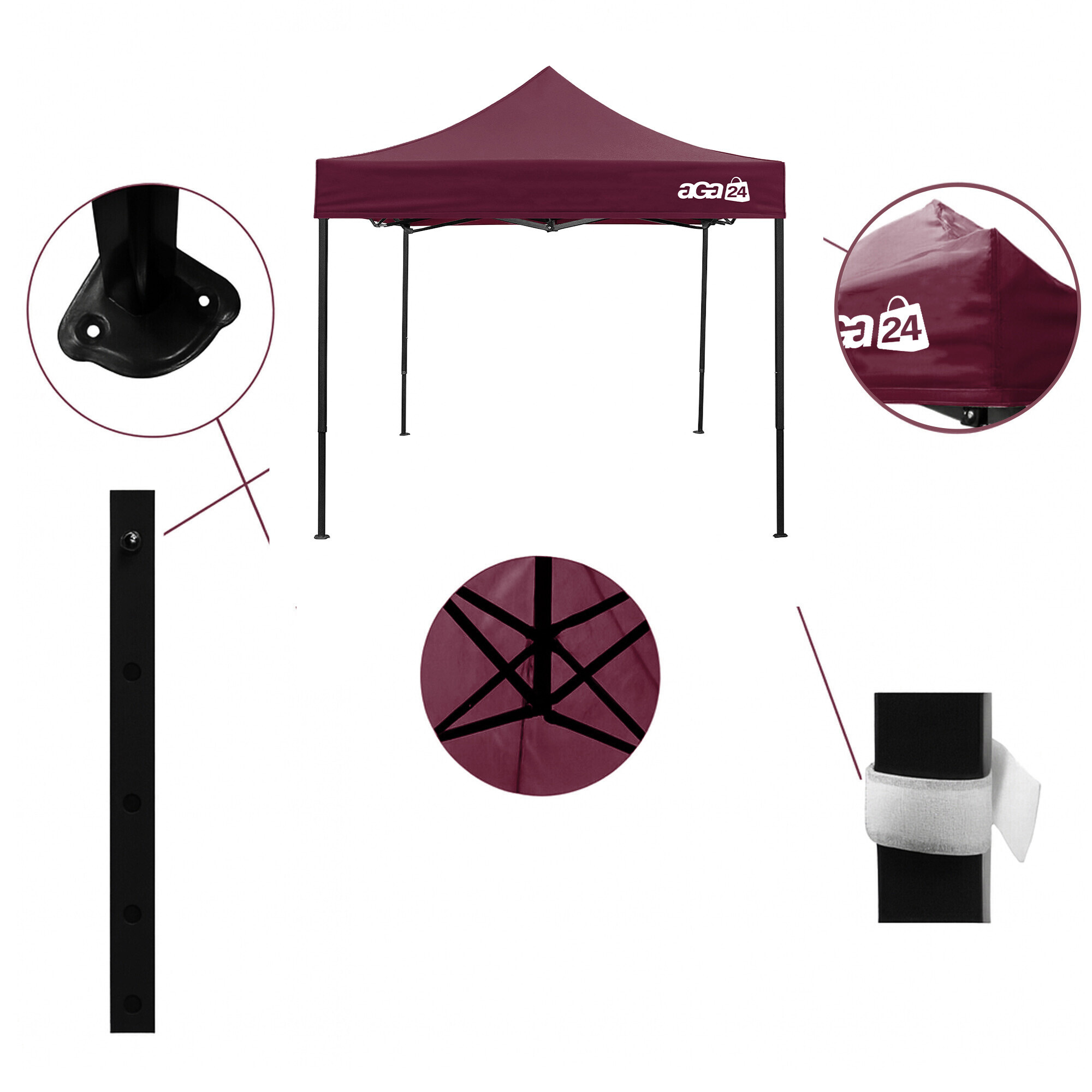 Konstrukciu tvorí oceľový rám s nožnicovým mechanizmom, ktorý je povrchovo chránený práškovým lakom proti korózii. Oproti bežným skladacím stanom má tento model skrutkované spoje, čo zvyšuje pevnosť, predlžuje životnosť a uľahčuje prípadný servis alebo výmenu dielov. Vďaka trom stupňom regulácie je možné výšku nastaviť od 213 cm až do 290 cm, takže stánok ľahko prispôsobíte konkrétnym podmienkam.