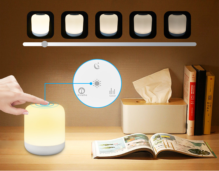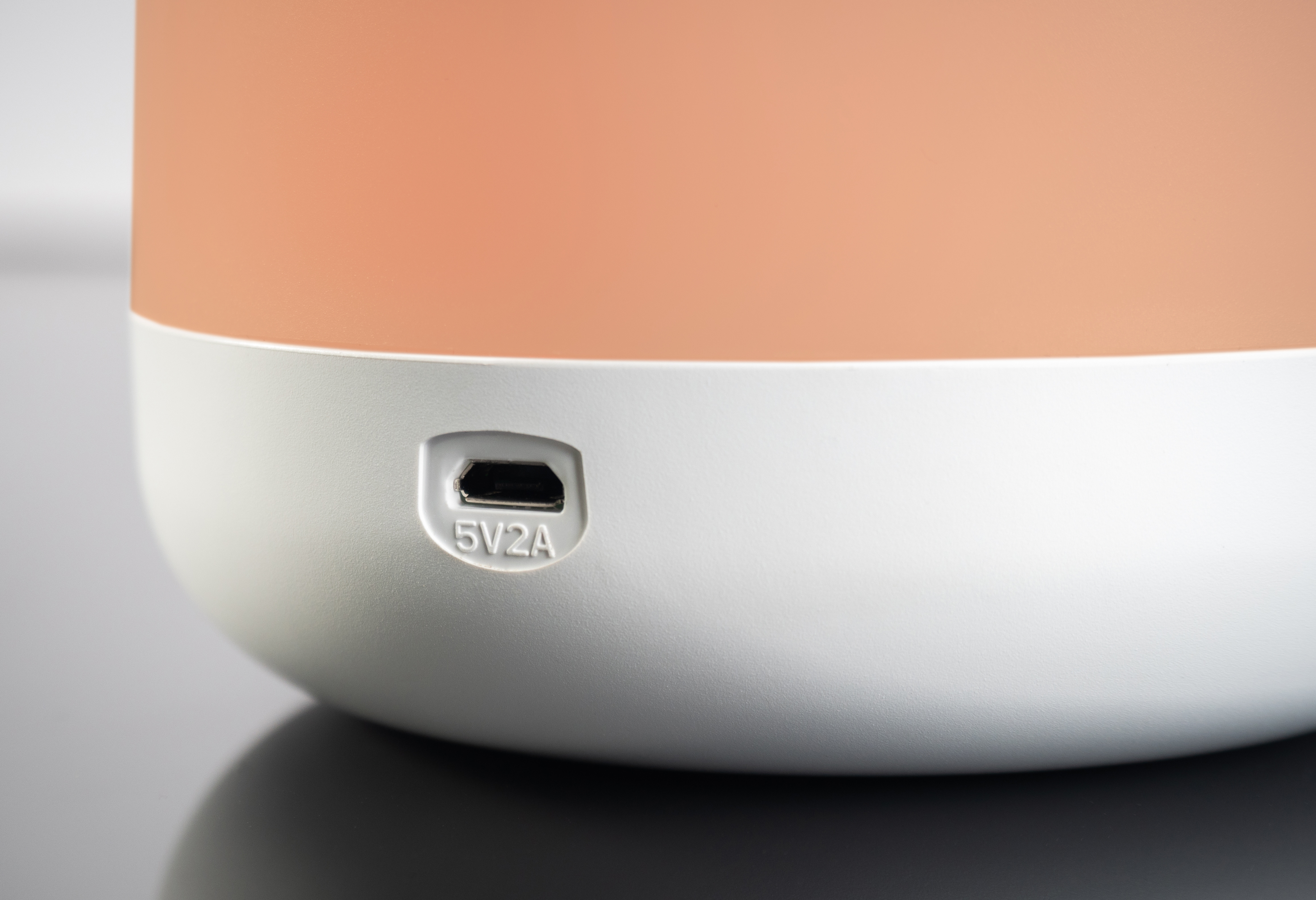 Farebné zmeny sa dajú nastaviť dotykom. Na prednej časti lampy sa nachádza úchyt pre jednoduché prenášanie.Lampa sa nabíja prostredníctvom USB.