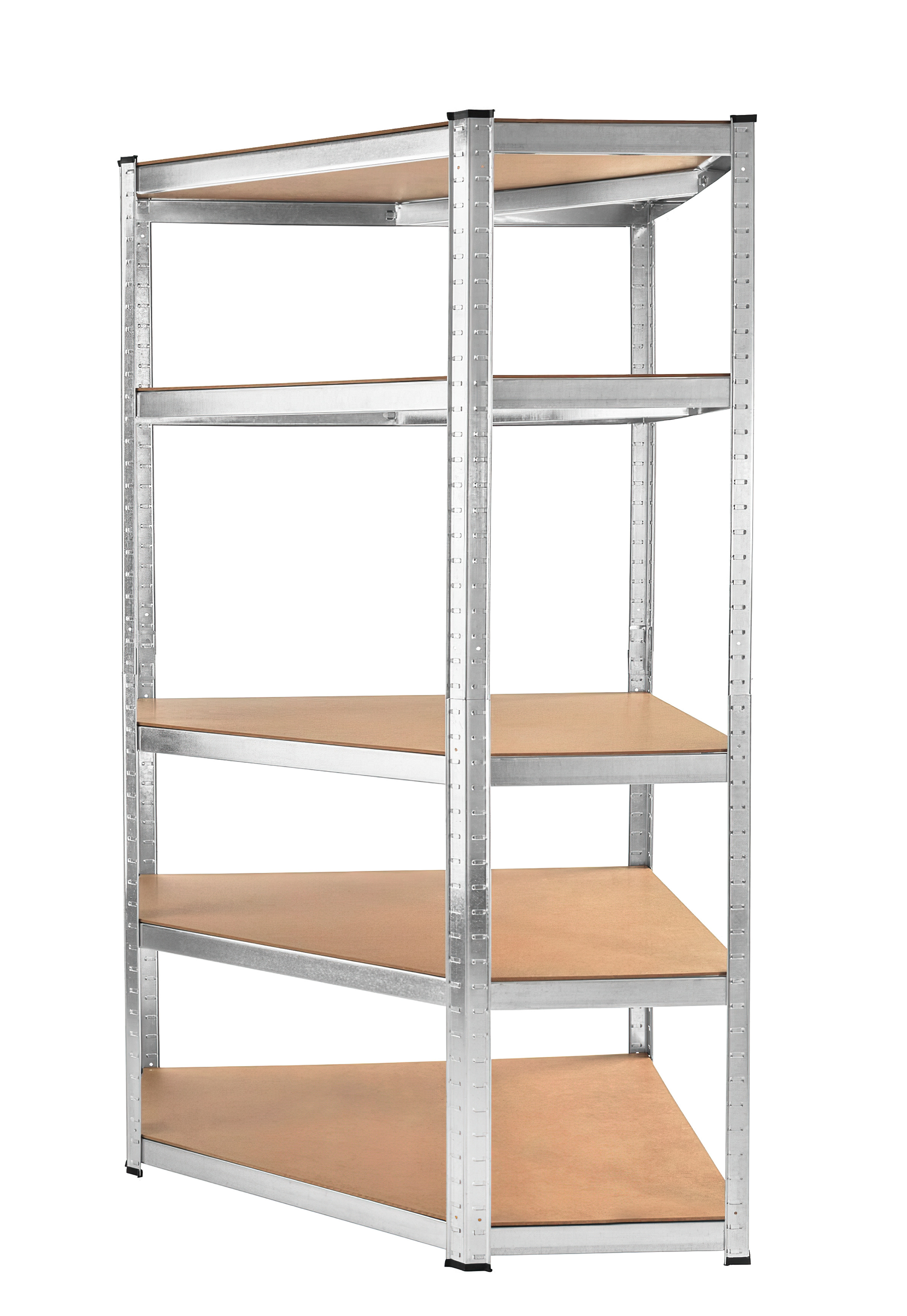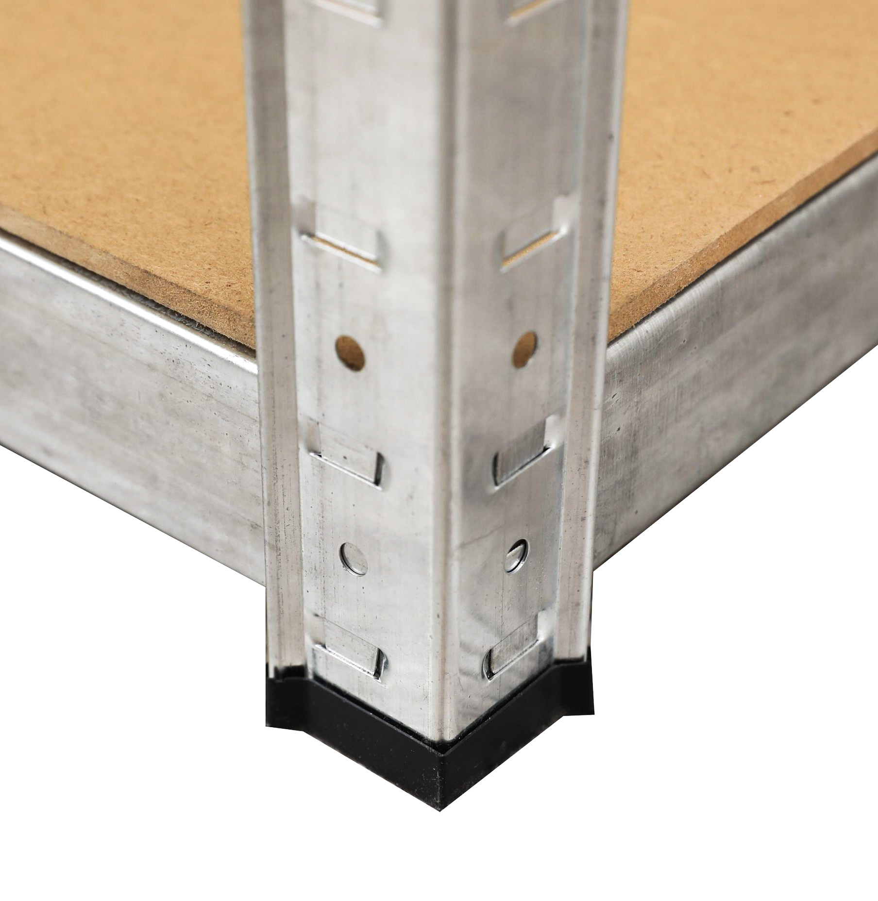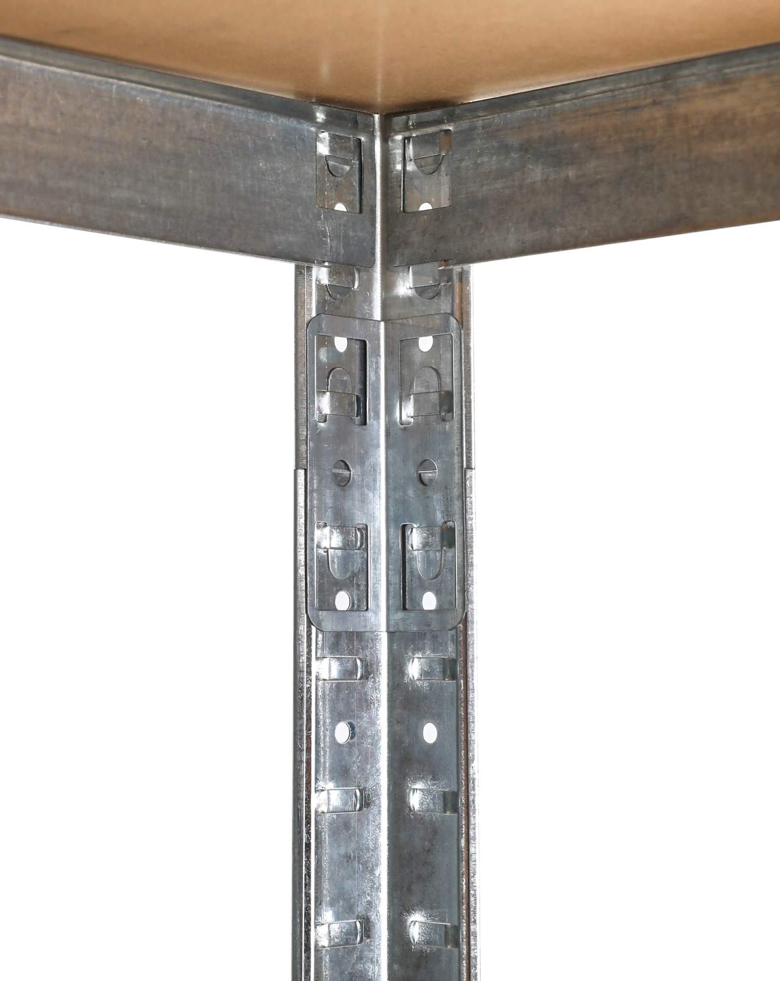 Vo výške približne 180 cm máte k dispozícii 5 políc z mdf, ktoré môžete vložiť podľa potreby. Pozinkovaný oceľový rám v striebornej farbe zaručuje stabilitu a vysokú nosnosť približne 875 kg (približne 175 kg na jednu policu).