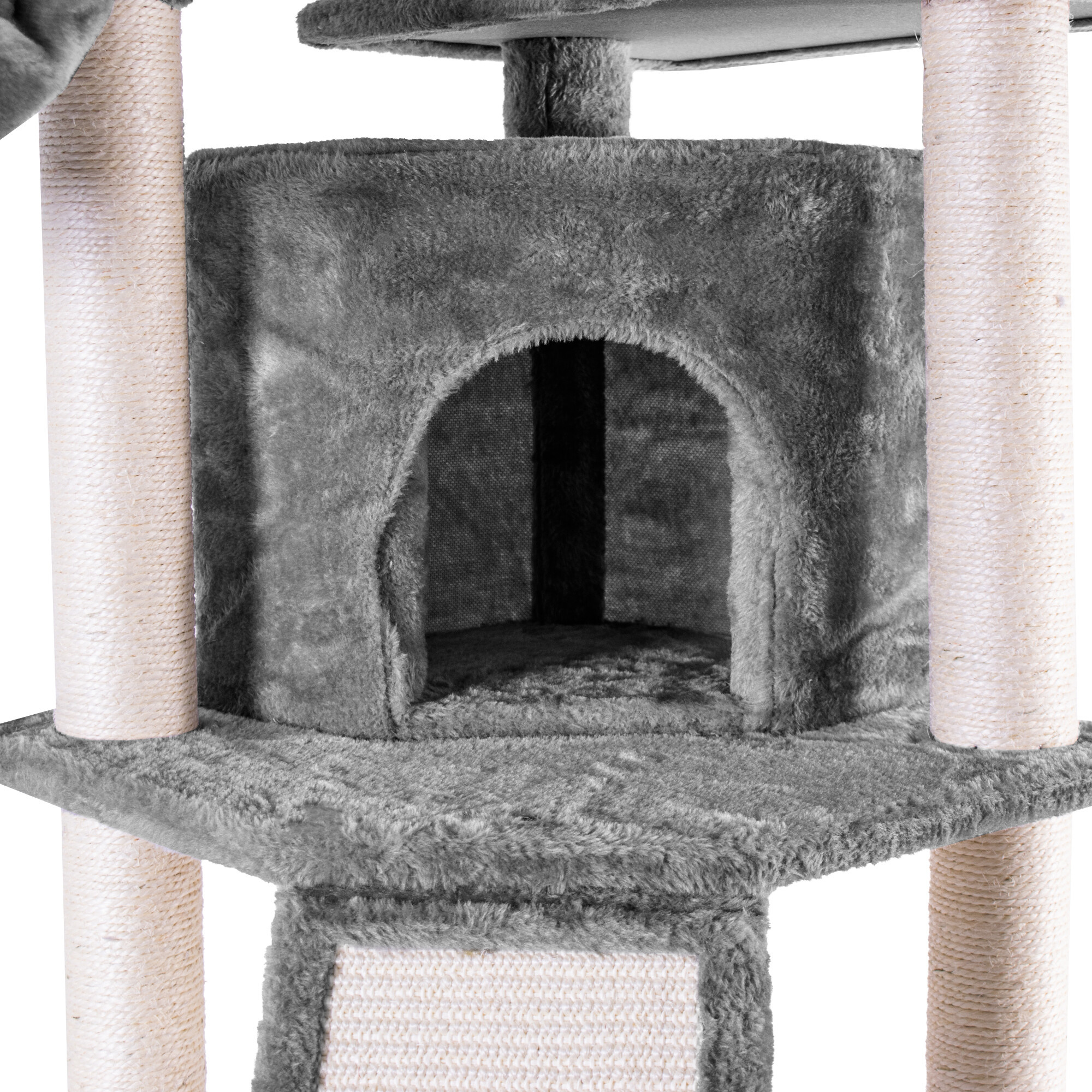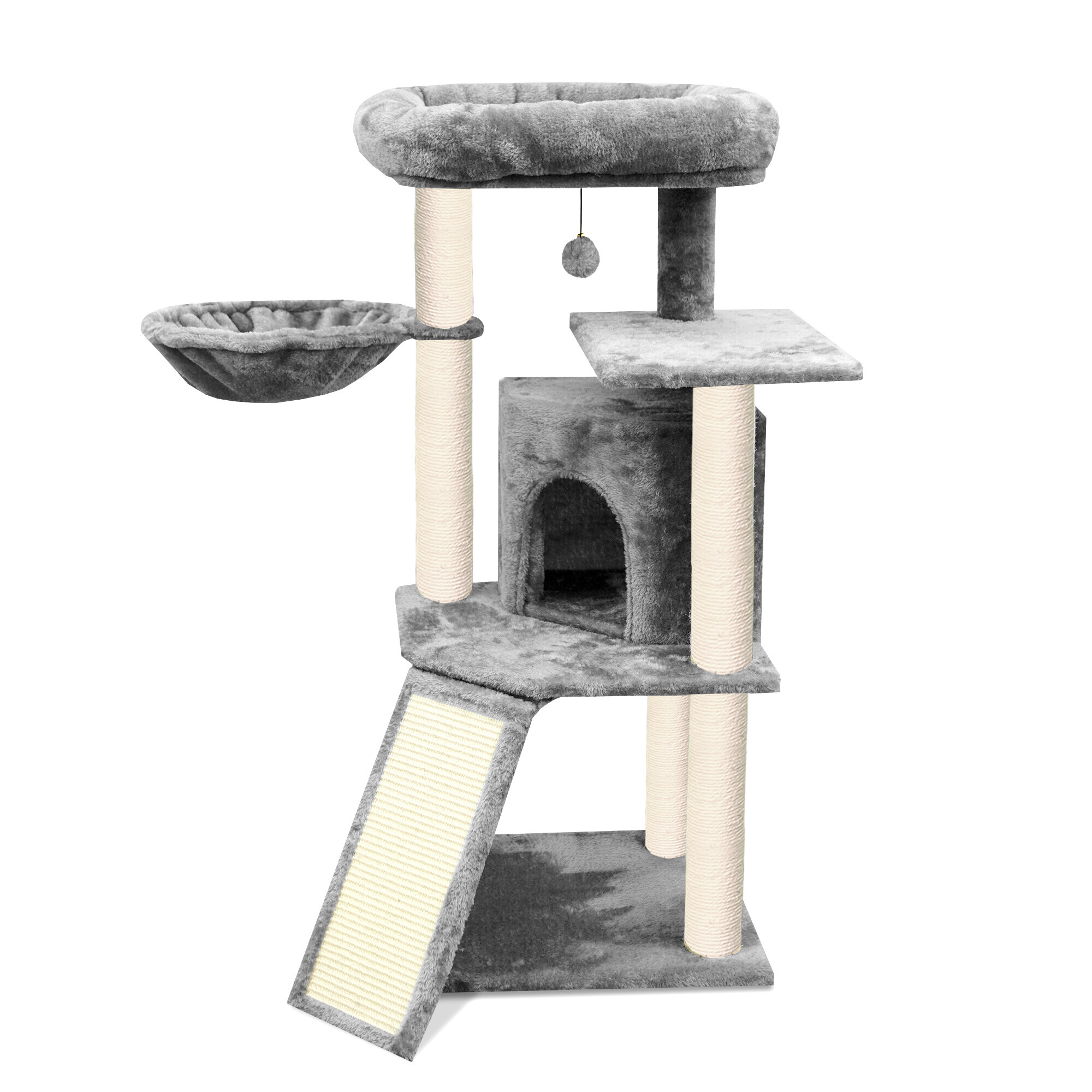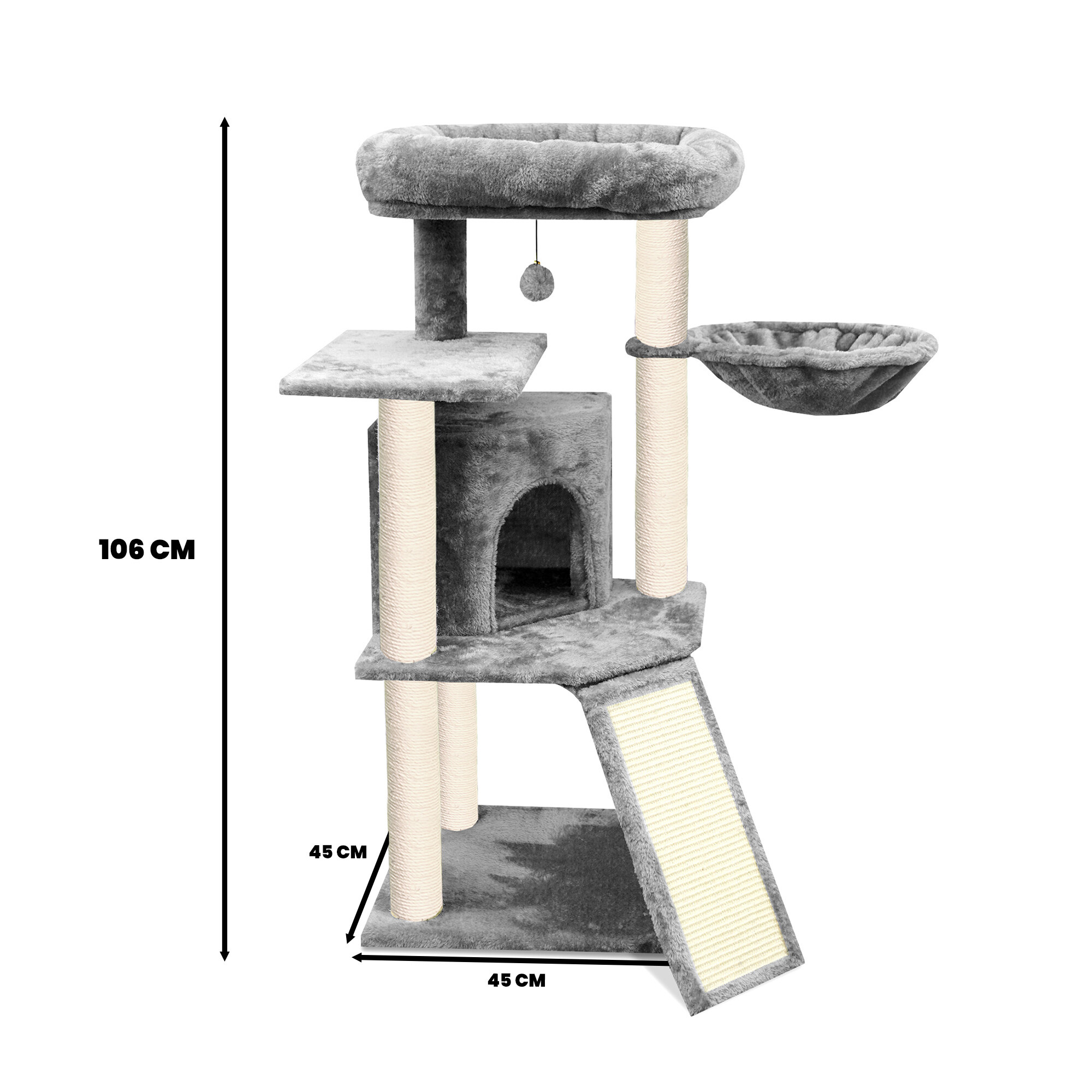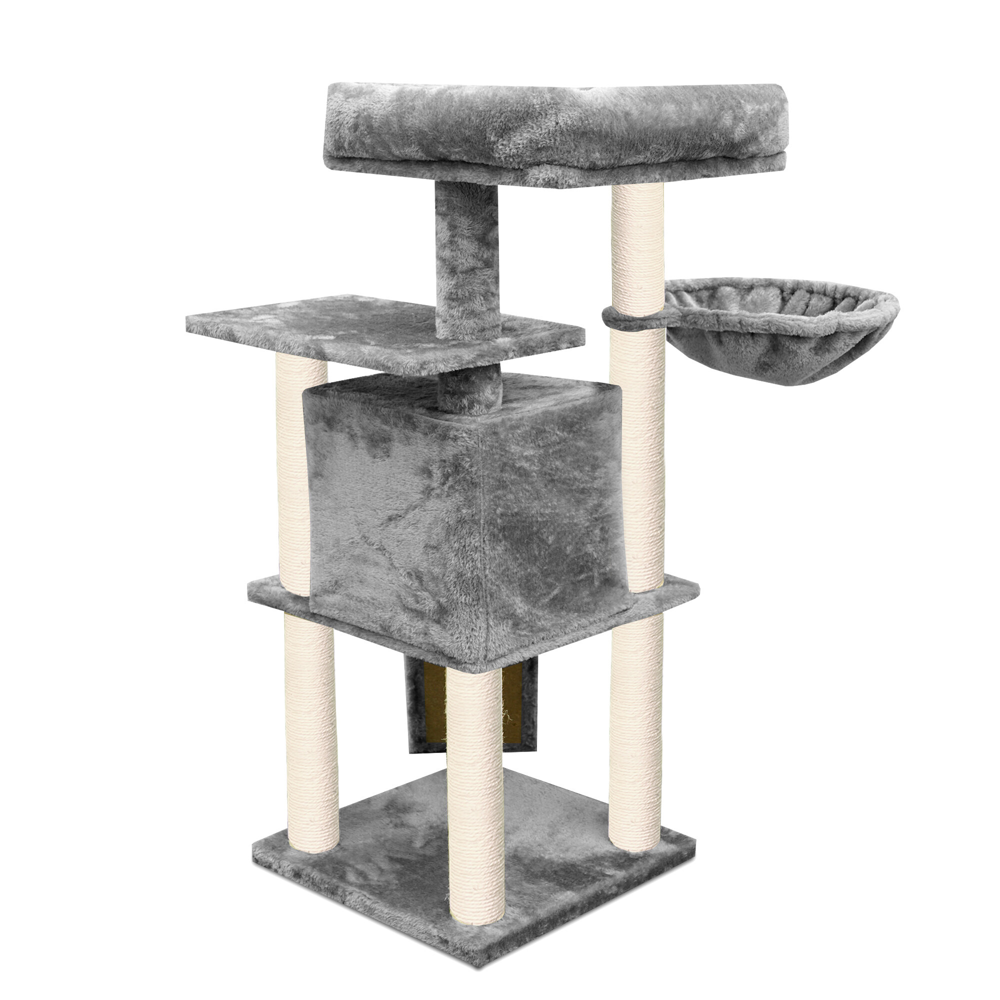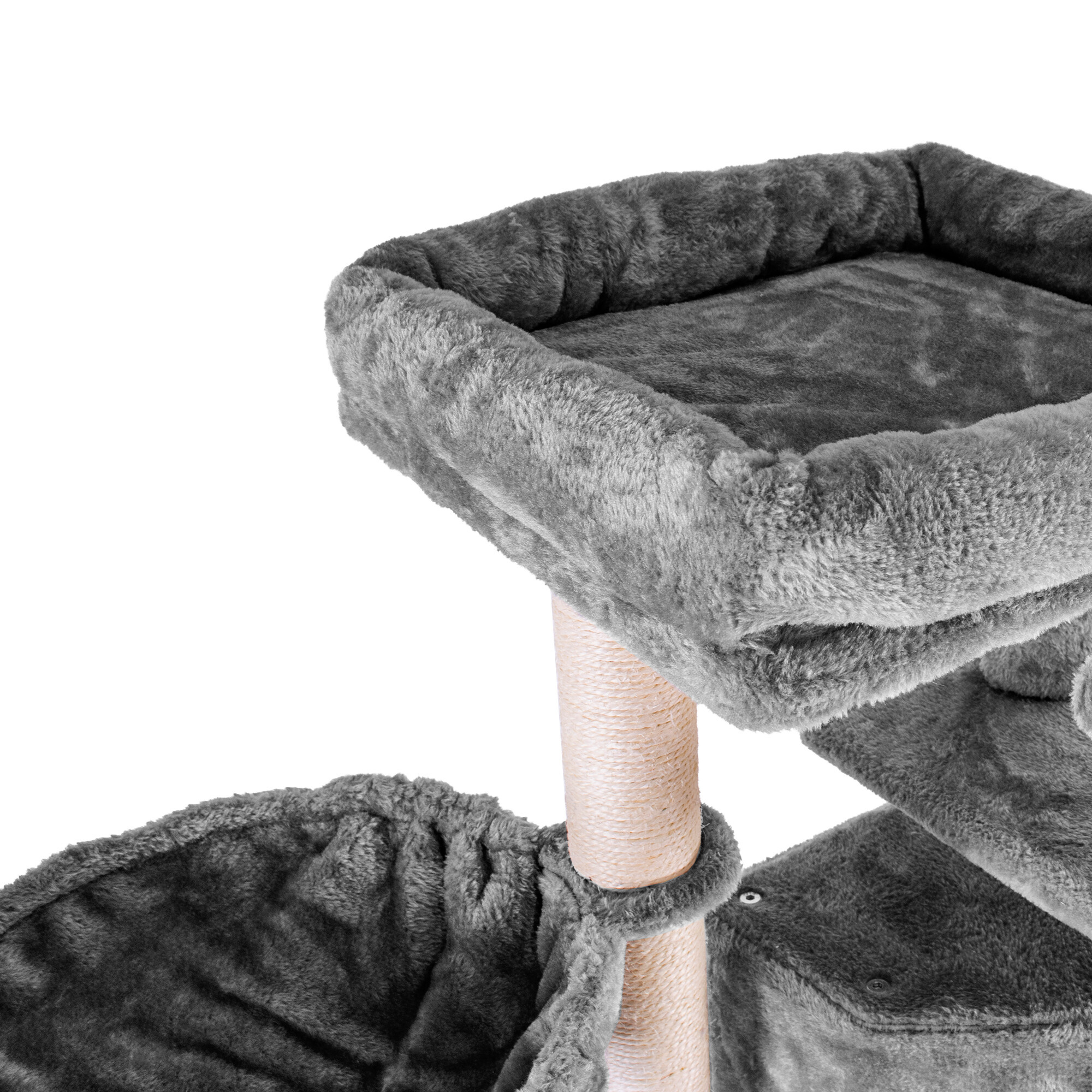 Škrabací strom obalený kvalitným a silným sisalom jej poslúži na brúsenie pazúrikov kedykoľvek, bez rizika, že si ich bude brúsiť práve tam, kde si to neželáte. Zároveň sa vďaka mäkkému plyšu stane jej obľúbeným miestom na odpočinok a hranie.