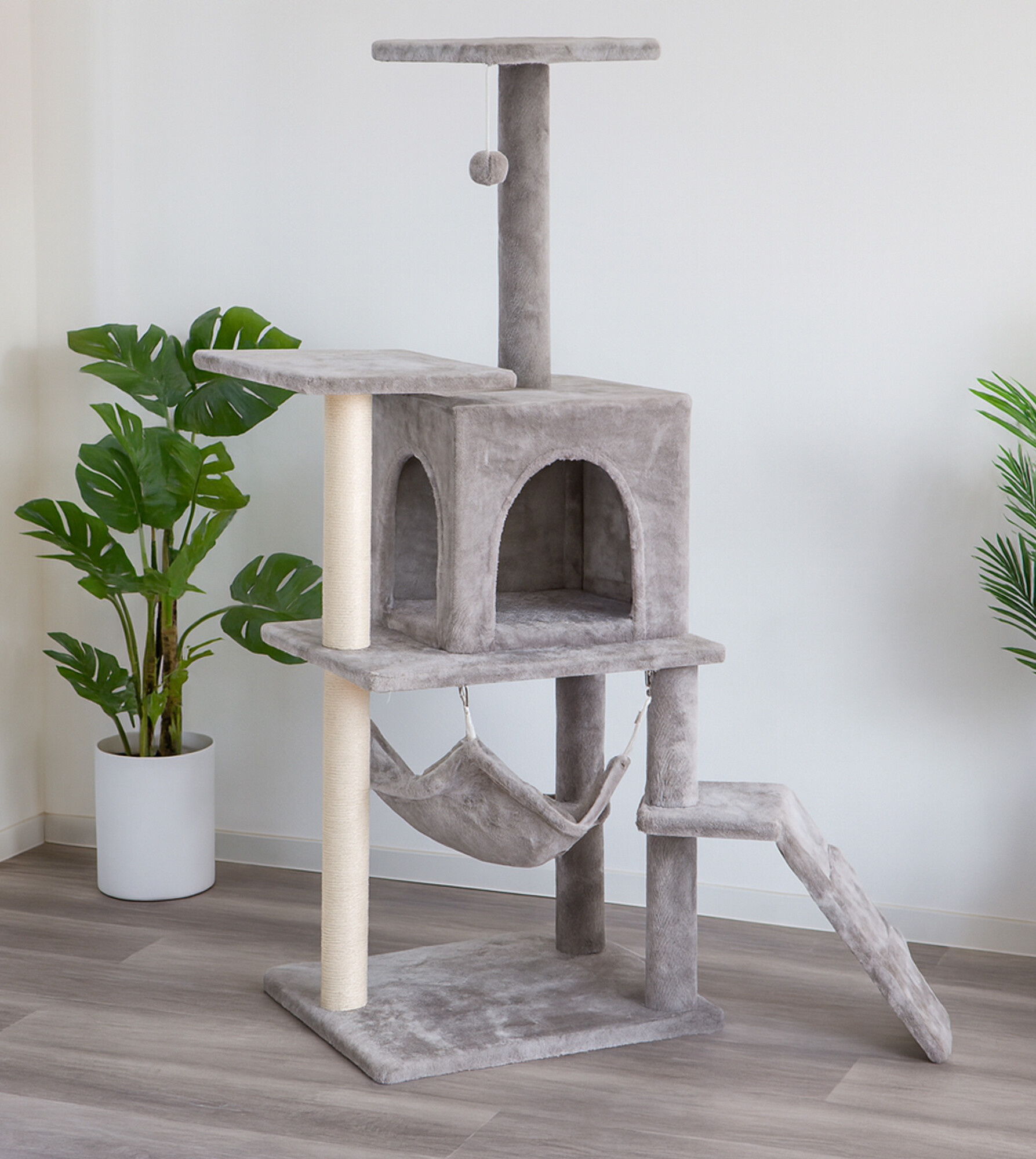 Škrabací strom omotaný kvalitným a silným sisalom jej kedykoľvek poslúži na nabrúsenie pazúrikov, bez toho, aby ste riskovali, že to urobí presne tam, kde nechcete. Súčasne to bude vďaka hebkému plyšu jej obľúbené miesto na odpočinok a hru.