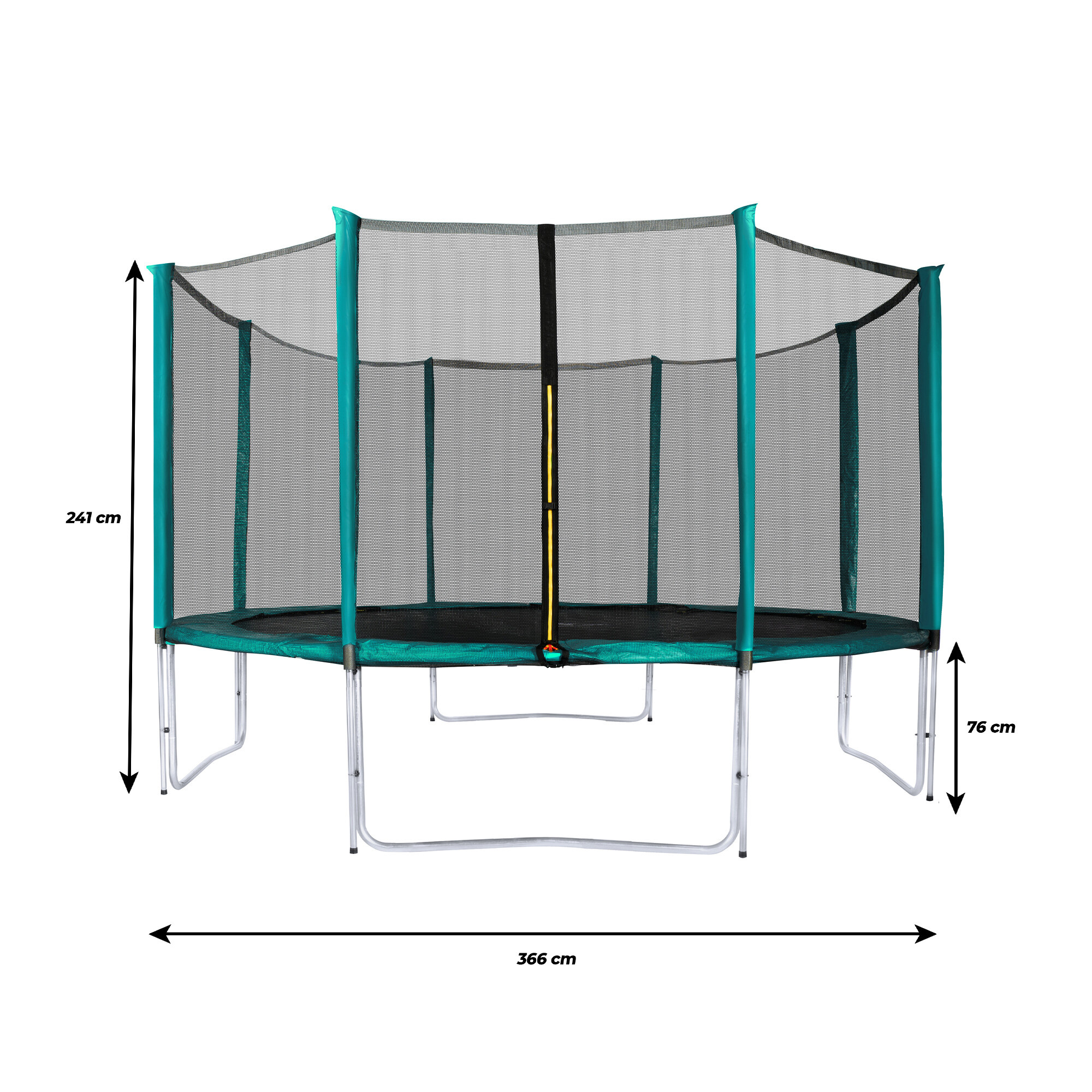 Špecifikácie trampolíny Aga SPORT PRO 366 cm Dark Green s ochrannou sieťou.