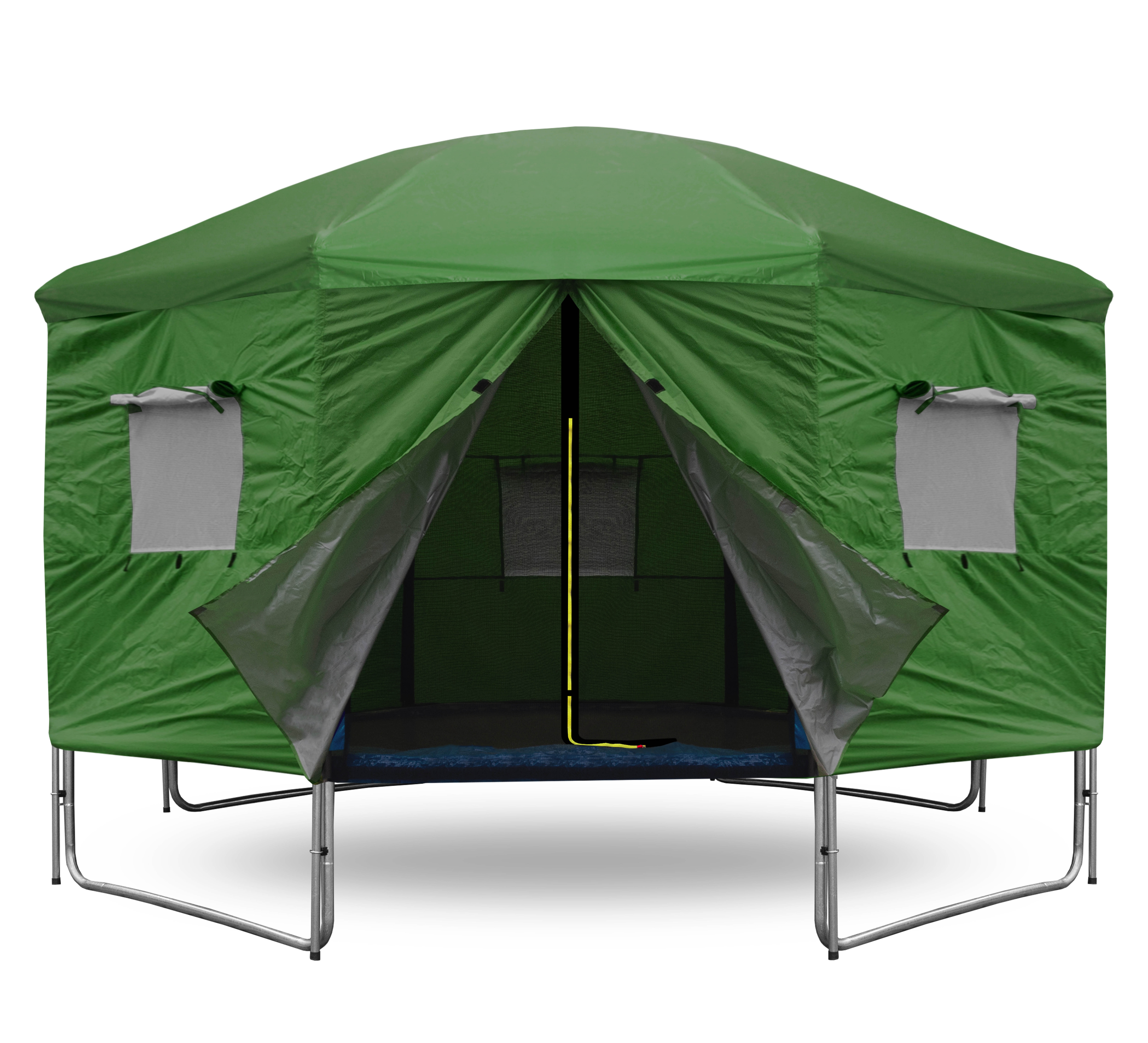 A v čase, keď trampolína nie je aktívne využívaná, pomáha stan chrániť odrazovú plochu pred znečistením a UV žiarením.