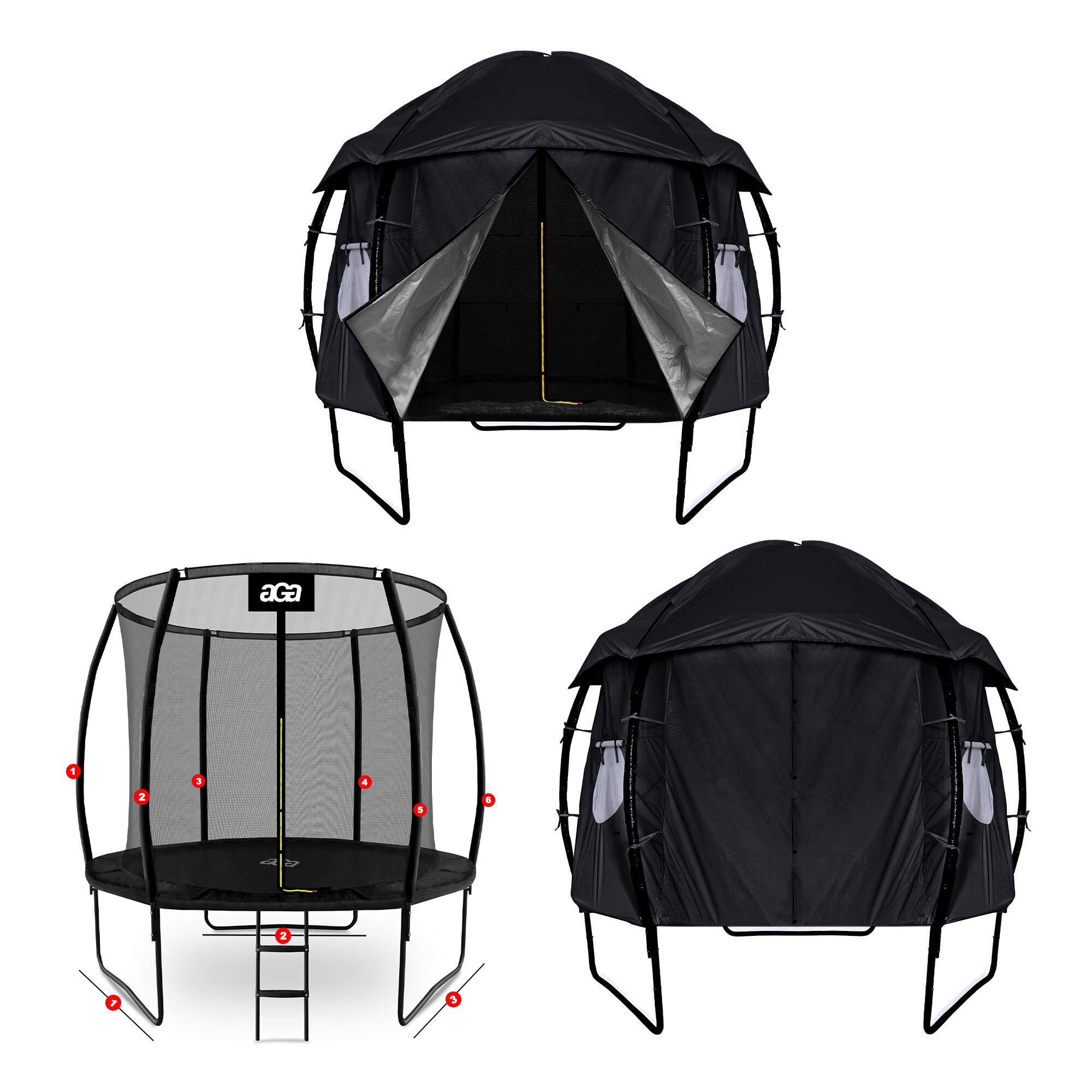 Špecifikácia stanu Aga na trampolíny EXCLUSIVE o veľkosti 250 cm (8 ft).