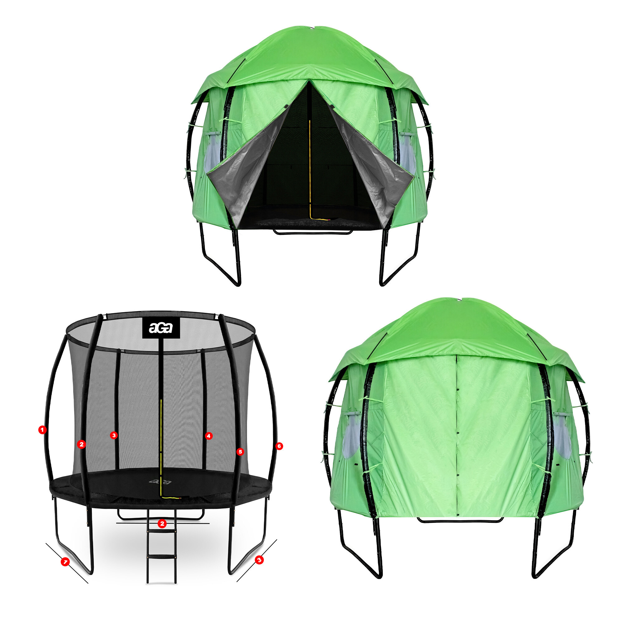 Špecifikácia stanu Aga na trampolíny EXCLUSIVE o veľkosti 250 cm (8 ft).