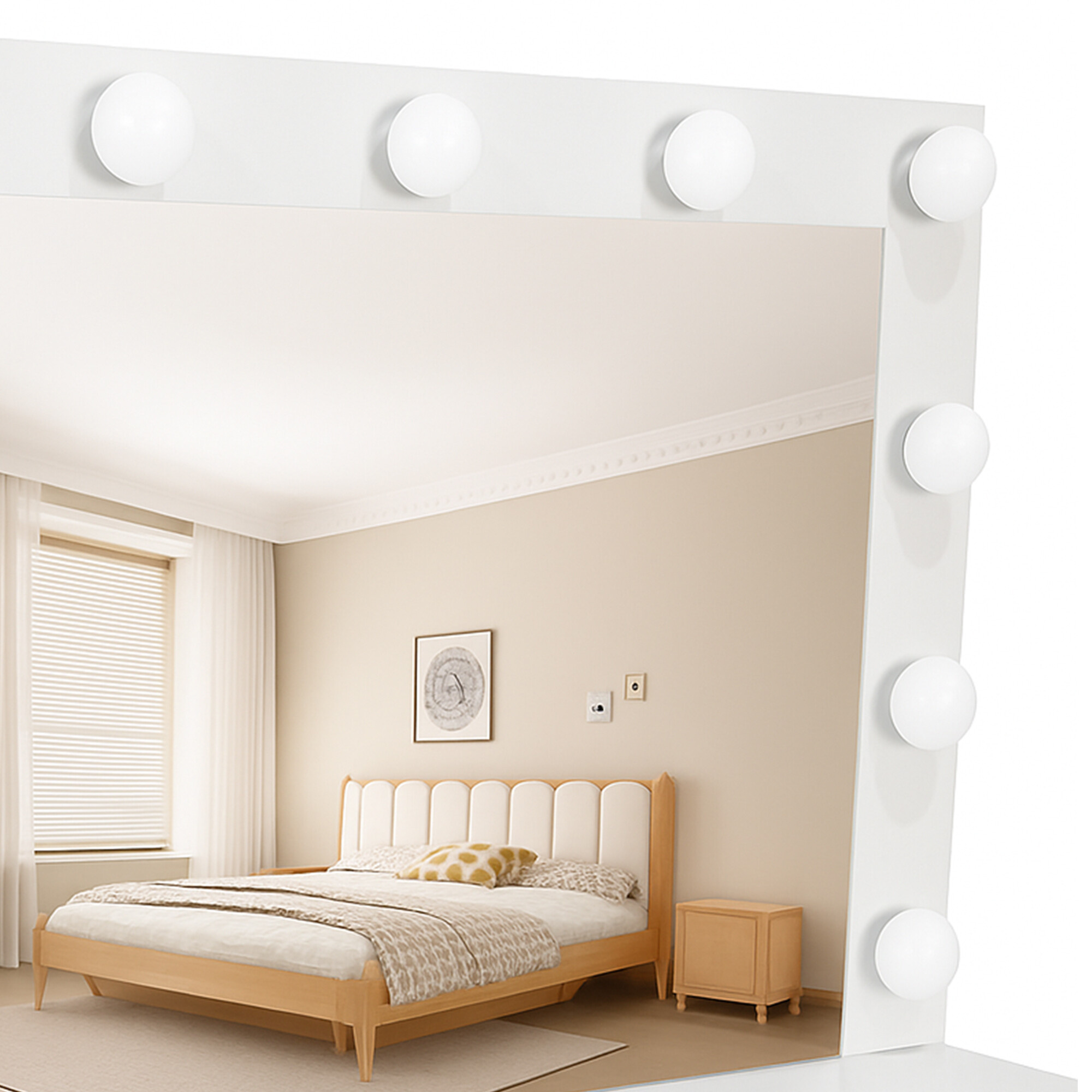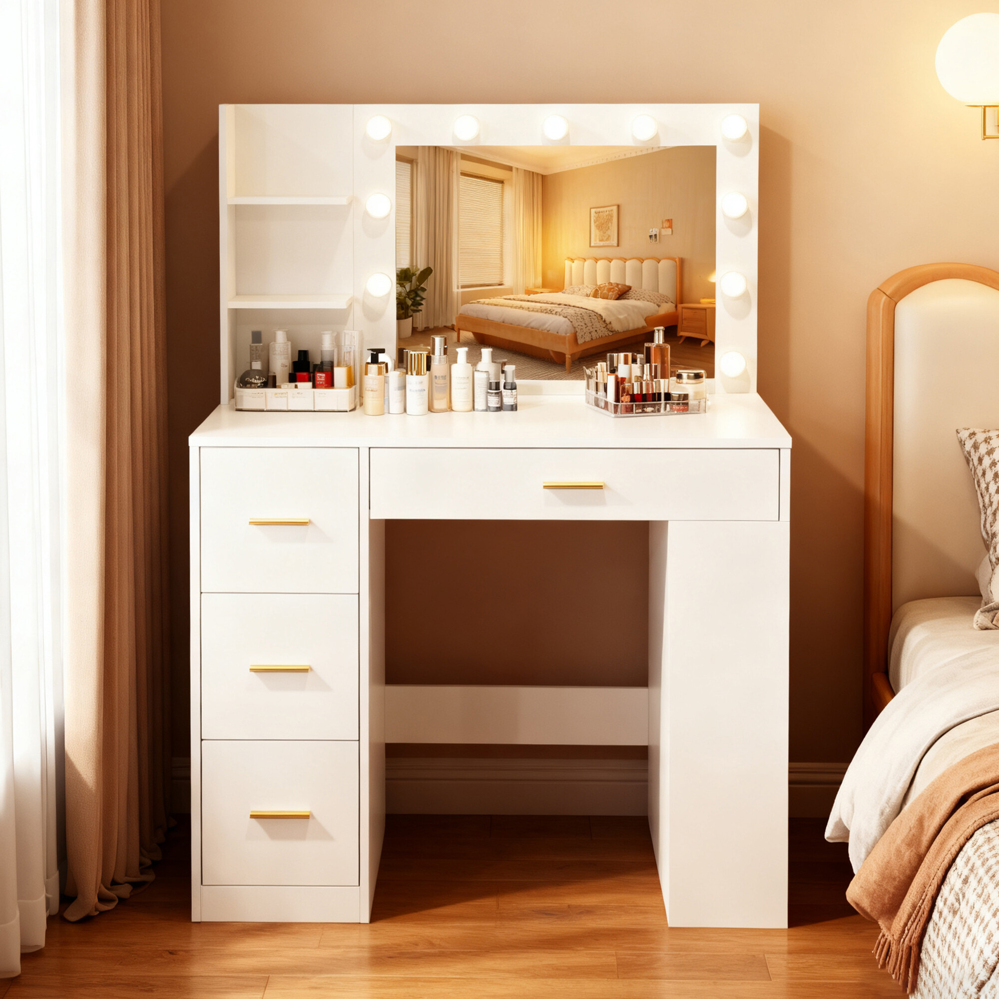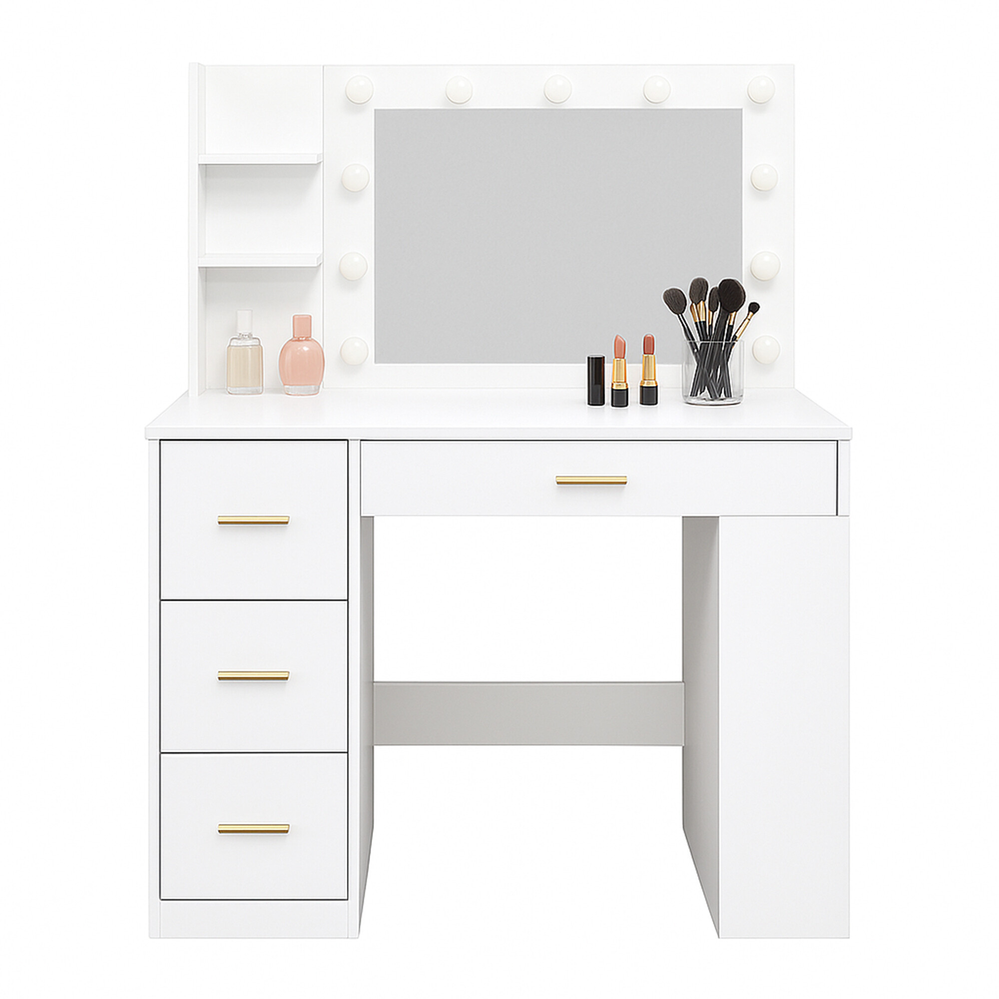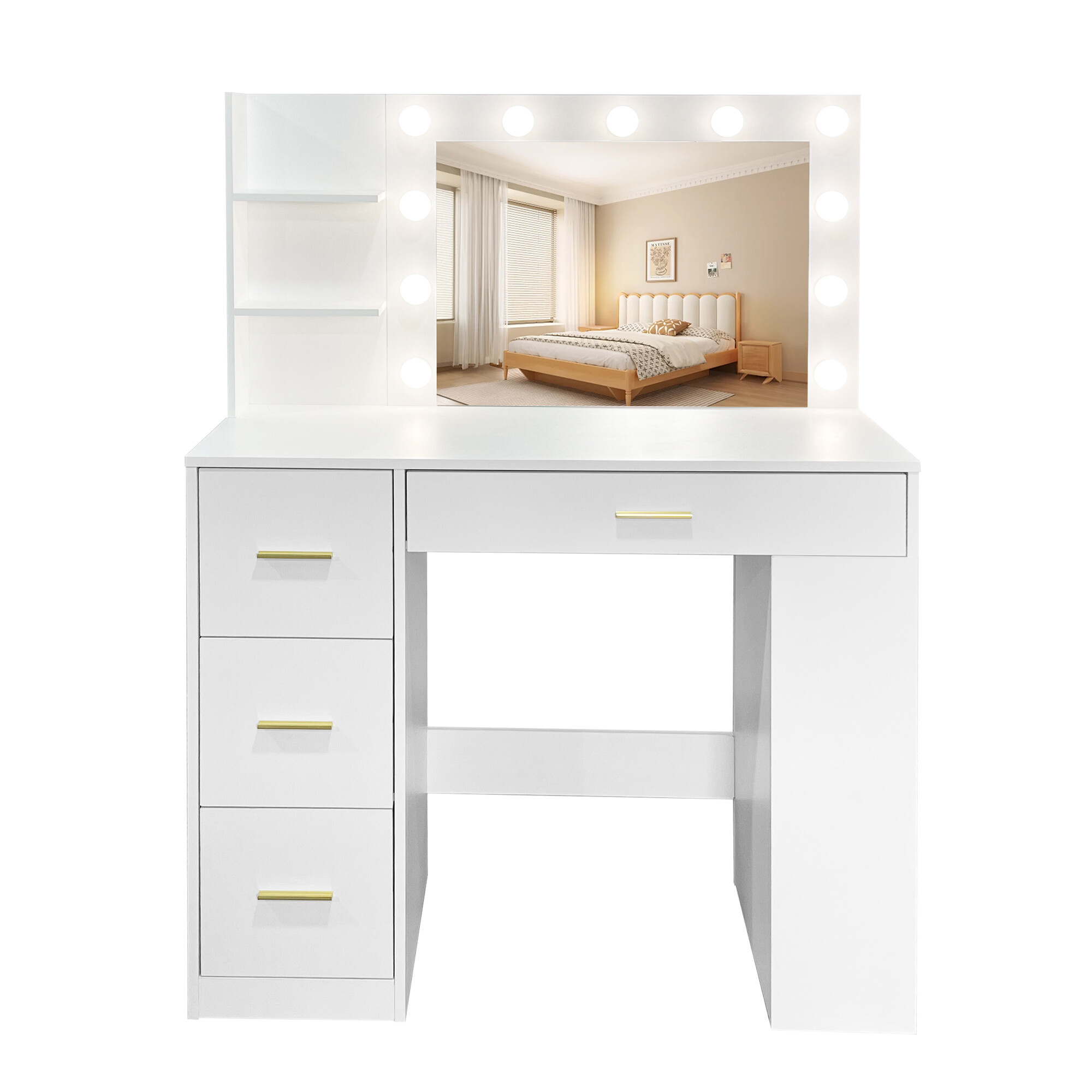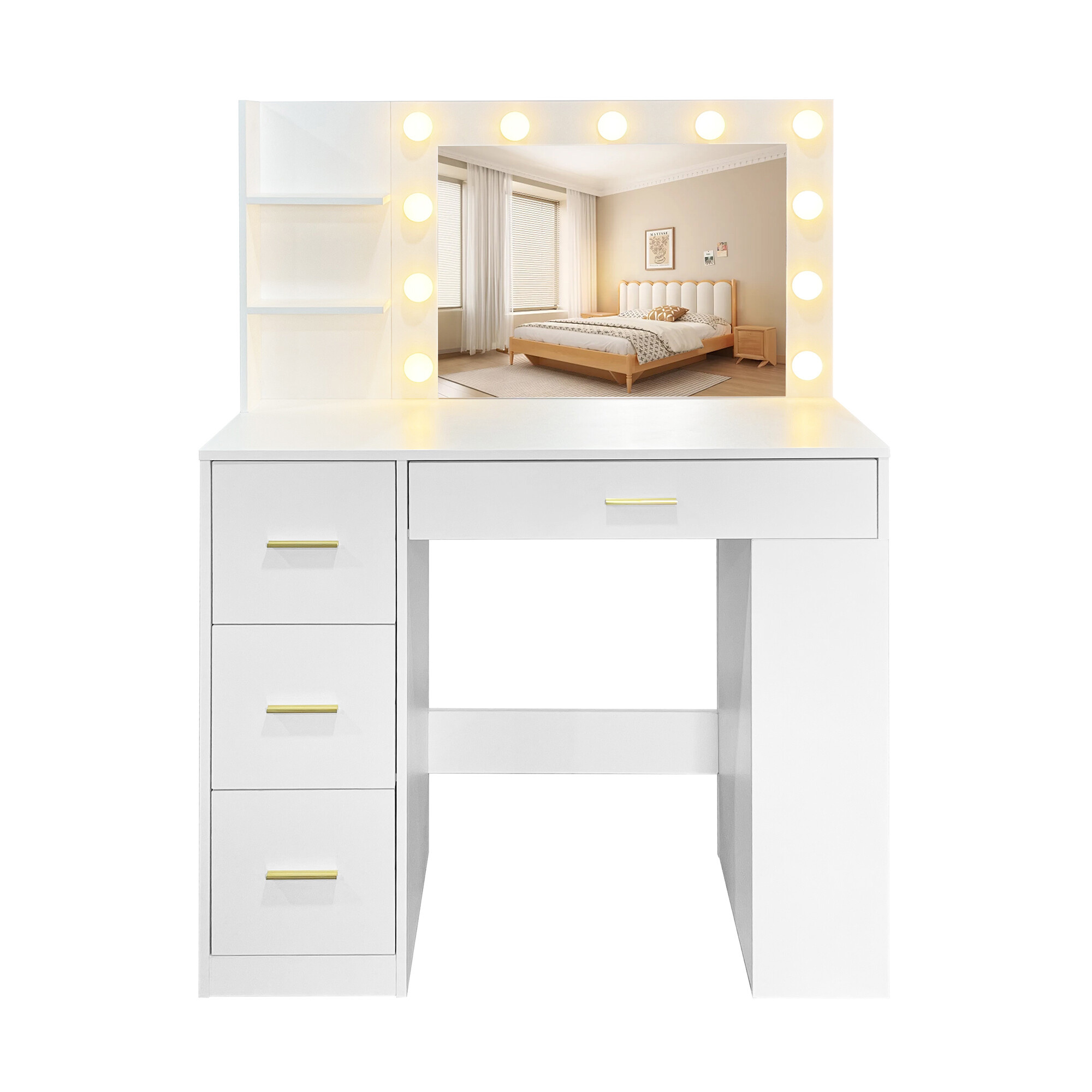Dominantou stolíka je veľké zrkadlo s 11 LED žiarovkami, pri ktorých si môžete jednoducho meniť teplotu svetla od studenej cez neutrálnu až po teplú. Vďaka tomu si vždy zaistíte ideálne osvetlenie pre líčenie, úpravu vlasov alebo večernú starostlivosť o pleť.