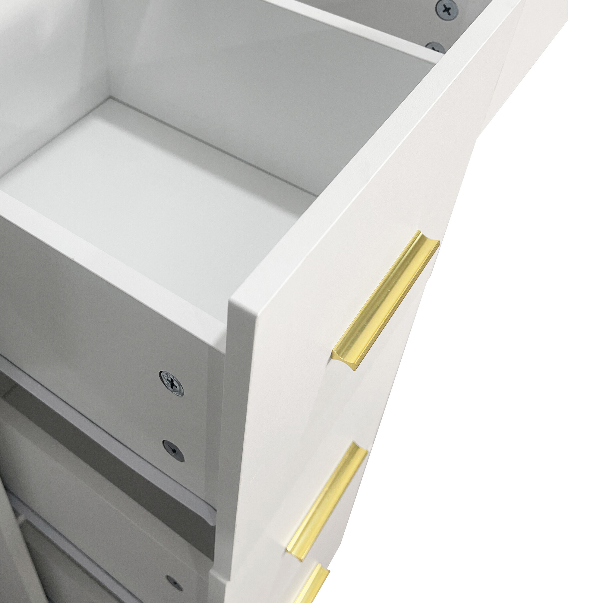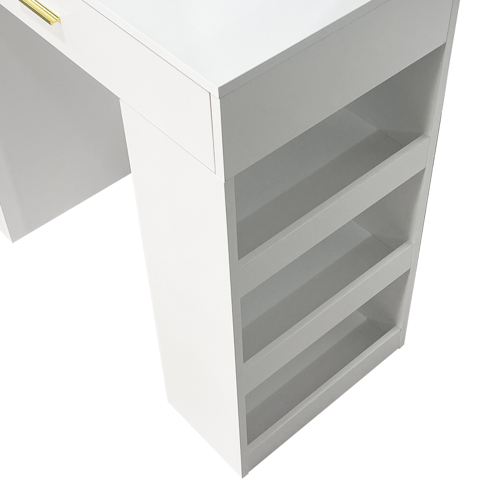 Vedľa zrkadla sa nachádzajú dve praktické otvorené poličky, na ktoré si môžete vystaviť svoje obľúbené kozmetické produkty, parfémy či dekorácie. Štyri priestranné zásuvky potom ponúkajú dostatok úložného priestoru pre make-up, šperky aj ďalšie doplnky, ktoré tak budete mať vždy prehľadne po ruke.