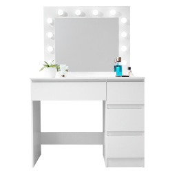 Toaletný stolík je vyrobený z pevných laminovaných drevotrieskových dosiek s melamínovým povrchom, ktorý vyniká svojou odolnosťou proti poškriabaniu.Zatiaľ čo jeho biele prevedenie prináša vkusnú nadčasovosť, kvalita použitých materiálov zase spoľahlivú trvanlivosť, vďaka čomu sa svojmu pôvabu môžete za stolíkom venovať dlhé roky.