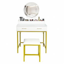 Aga Toaletný stolík so zrkadlom a osvetlením + taburet Biely