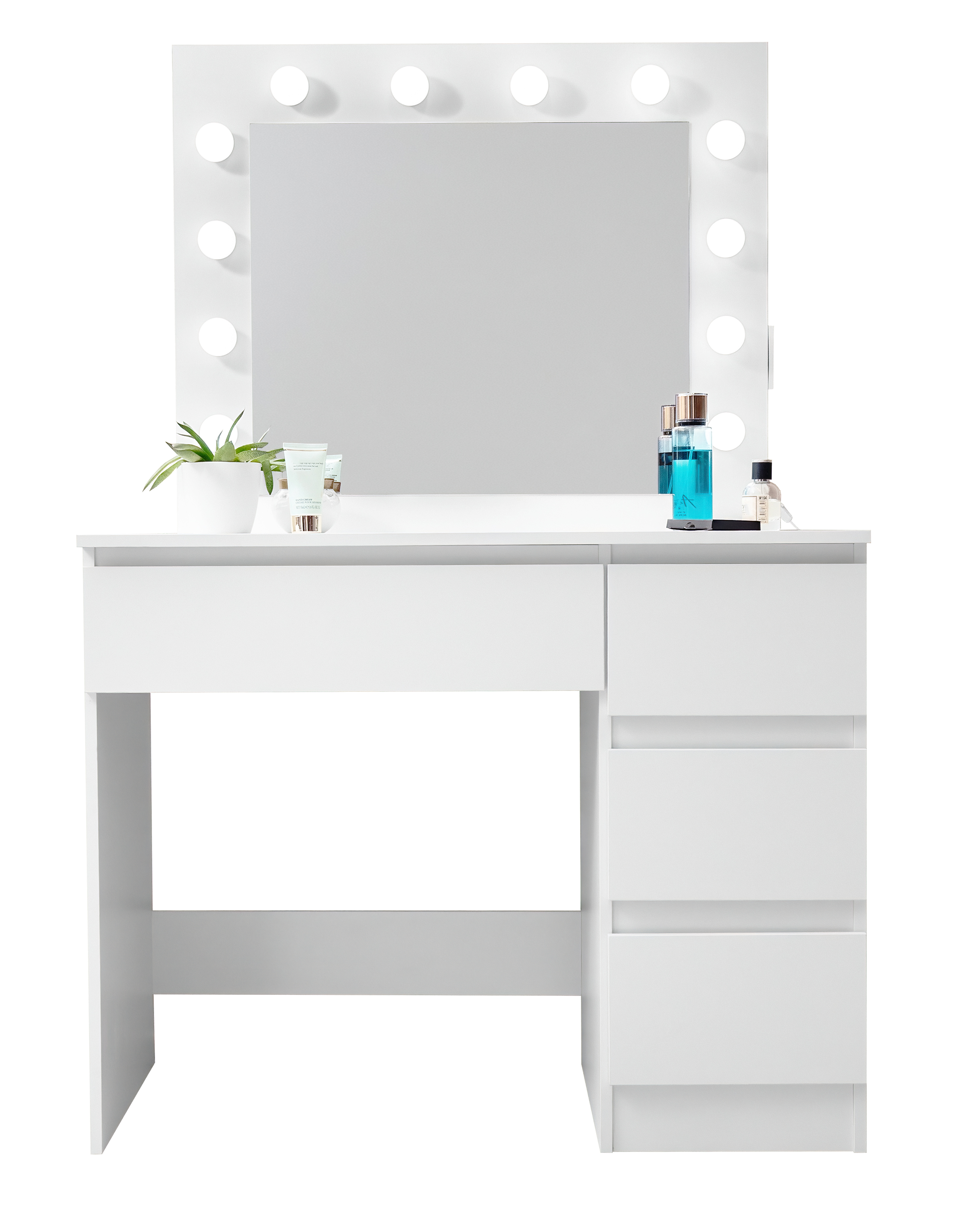 Toaletný stolík je vyrobený z pevnej laminovanej drevotriesky s melamínovým povrchom, ktorý vyniká odolnosťou proti poškriabaniu.
