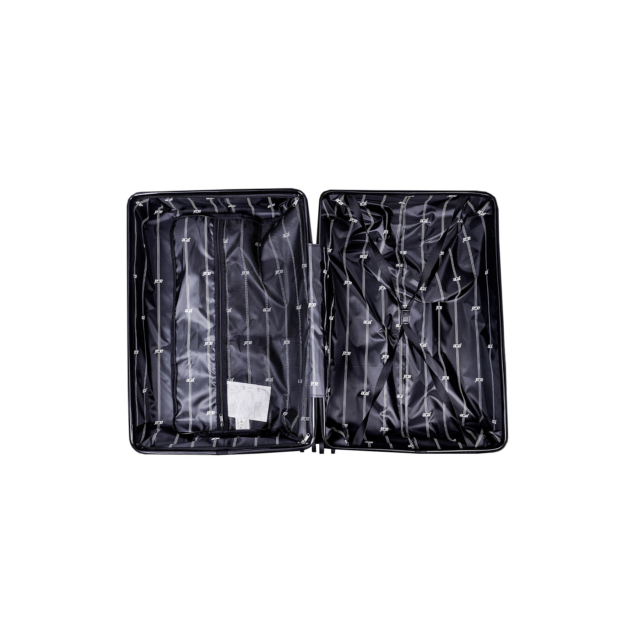 Vnútorný priestor kufra je navrhnutý tak, aby vám poskytol maximálne pohodlie pri balení. Kufor obsahuje vnútorné fixačné popruhy, ktoré udržia vaše veci na mieste a zabránia ich pohybu počas prepravy. Ďalej je tu deliaca priehradka s vreckom na zips, ktorá vám umožní oddeliť rôzne typy oblečenia alebo iné predmety a udržať ich organizované.