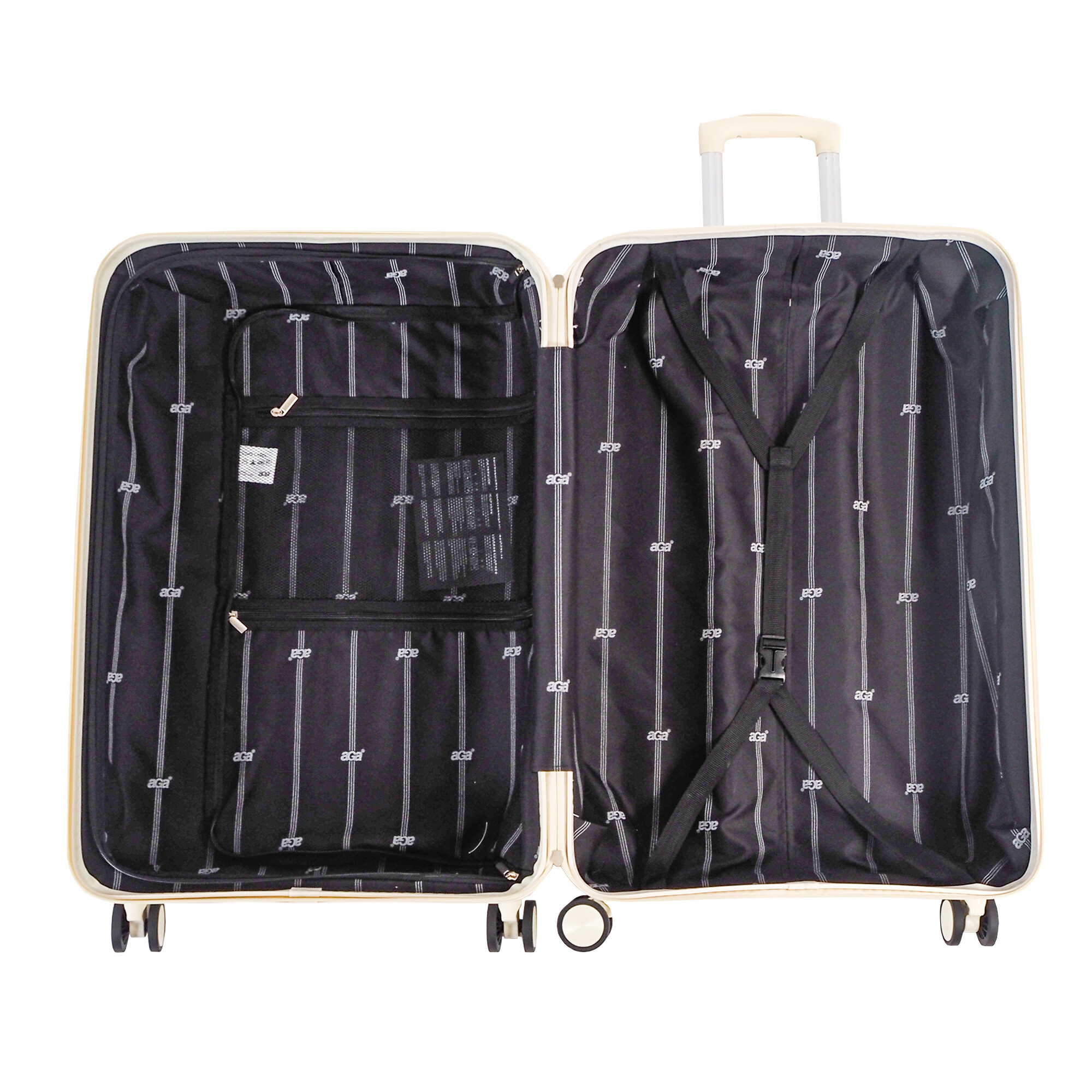Každý kufor obsahuje vnútorné fixačné popruhy, ktoré udržia vaše veci na mieste a zabránia ich pohybu počas prepravy. Ďalej je tu deliaca priehradka s vreckom na zips, ktorá vám umožní oddeliť rôzne typy oblečenia alebo iné predmety a udržať ich organizované.Nezáleží na tom, či cestujete často alebo len občas, sada cestovných kufrov Aga Travel vám poskytne všetko, čo potrebujete pre pohodlné a bezstarostné cestovanie.