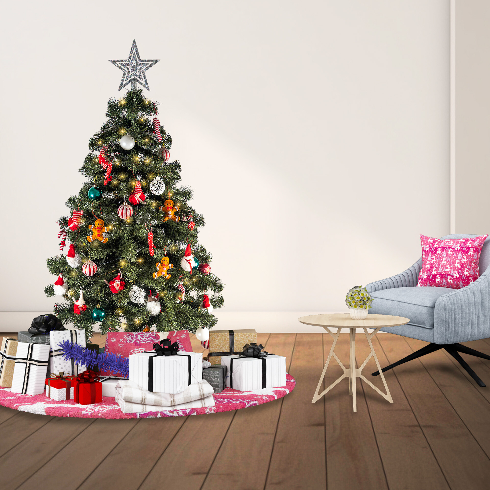 Vianočný stromček sa dodáva so štvorramenným plastovým stojanom.