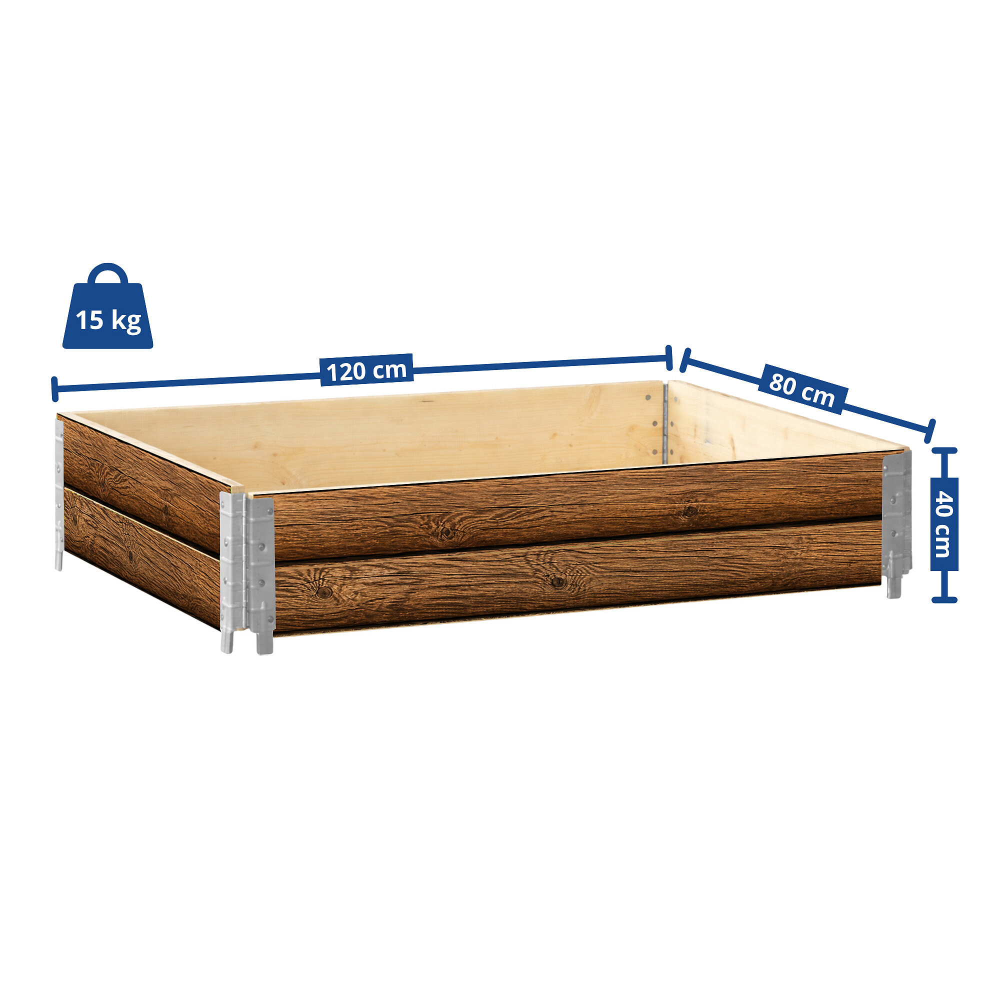Záhon je vyrobený z borovicového dreva s certifikáciou IPPC. Vonkajšia strana je doplnená grafikou dreva, ktorá zvýrazňuje jeho záhradný vzhľad a dobre sa hodí do vonkajšieho prostredia. Rozmer 120 × 80 cm ponúka dostatok priestoru pre domáce pestovanie bežných druhov zeleniny, byliniek, jahôd aj kvetov. Výška 40 cm umožňuje vytvoriť vrstvu zeminy vhodnú pre rôzne typy výsadby.