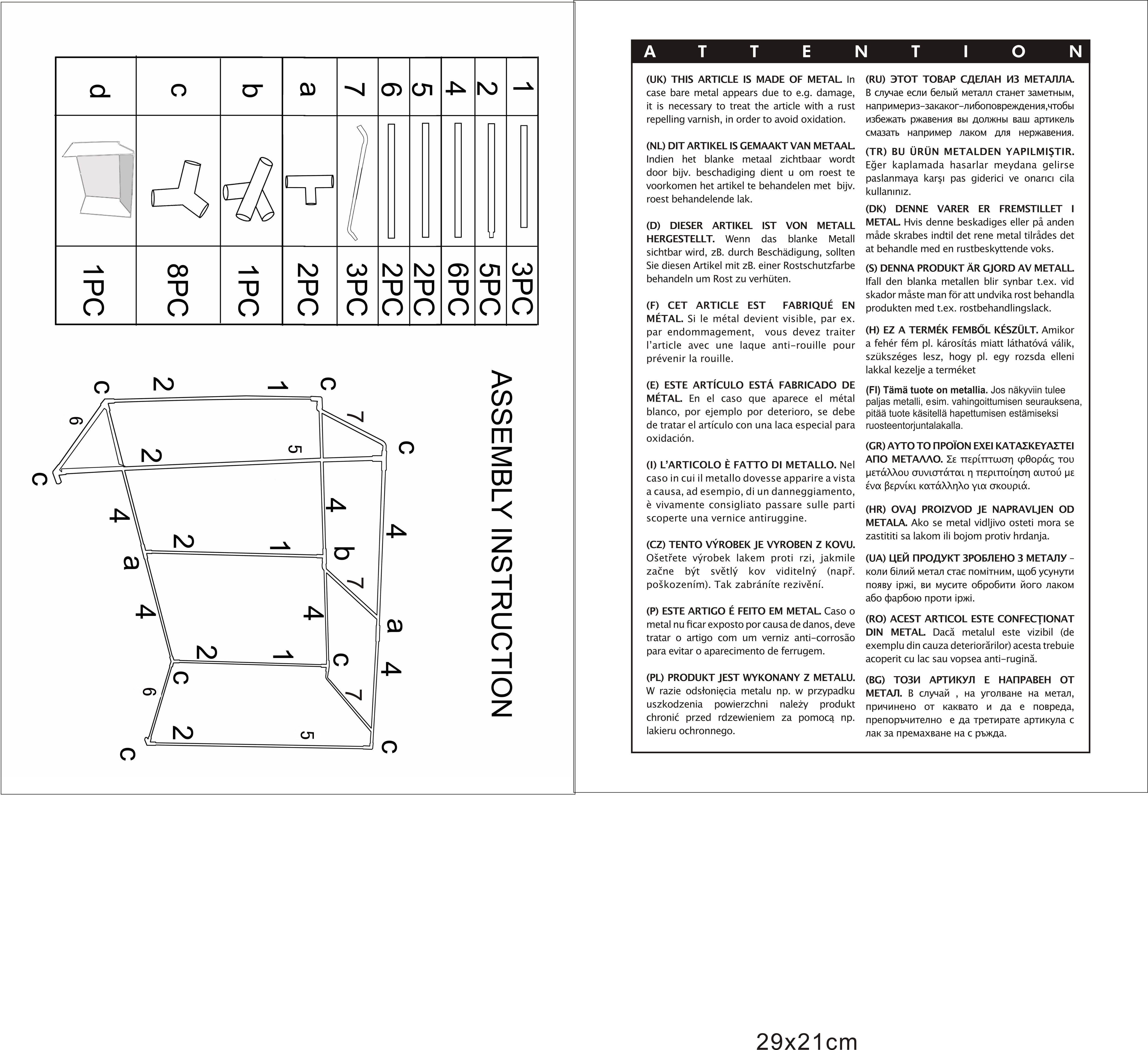 - Materiál konštrukcie : kov