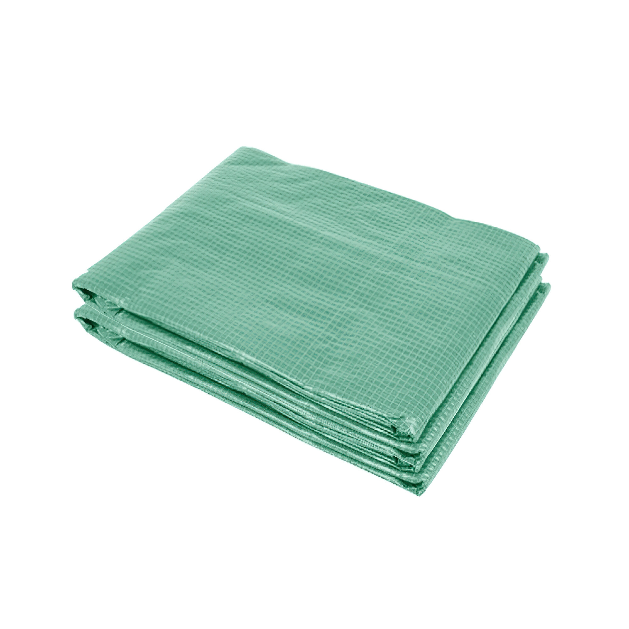 Priehľadná vrstva PE fólie dodáva pozoruhodné termoregulačné vlastnosti a maximálnu priepustnosť svetla. Zelená PP sieťovina vložená do štruktúry fólie spevňuje fóliu a chráni ju pred roztrhnutím a mechanickým poškodením.