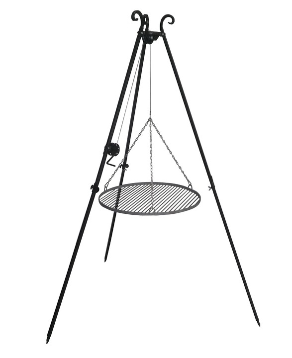 Výšku grilovacieho roštu možno ľahko nastaviť pomocou kladky umiestnenej v hornej časti trojnožky a háčikov. Gril s priemerom 60 cm umožňuje grilovanie pre väčšie skupiny.