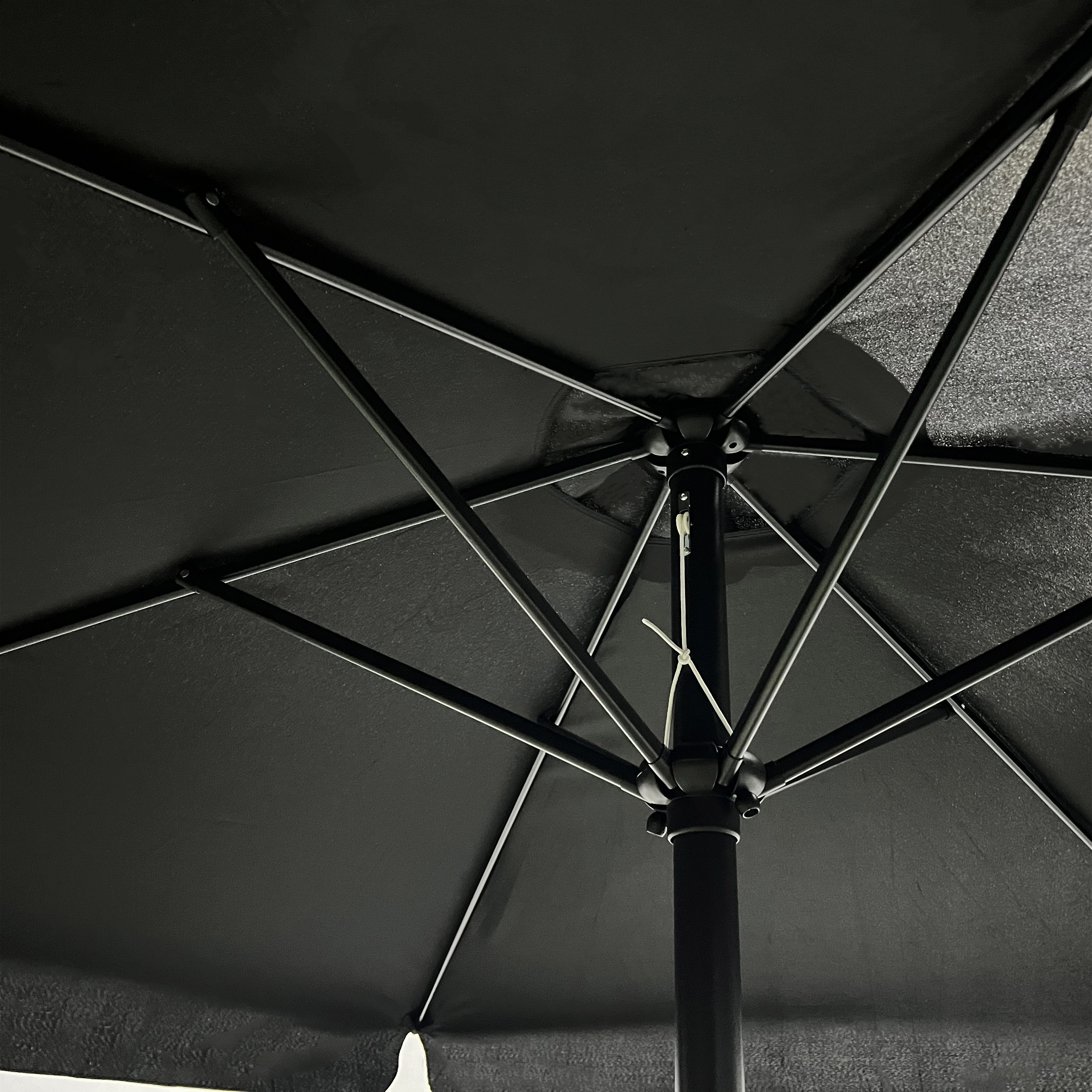 Konstrukcia slnečníka je vyrobená z kvalitného hliníka, ktorý vyniká svojou pevnosťou a zároveň nízkou hmotnosťou. Oproti klasickej oceli je hliníkový slnečník odolnejší voči korózii, čo z neho robí ideálne riešenie pre dlhodobé vonkajšie použitie. Stabilitu celej konštrukcie zabezpečuje robustná stredová tyč s priemerom 48 mm spolu s pevnými rebrami, vďaka ktorým slnečník drží tvar a odoláva bežným poveternostným podmienkam.