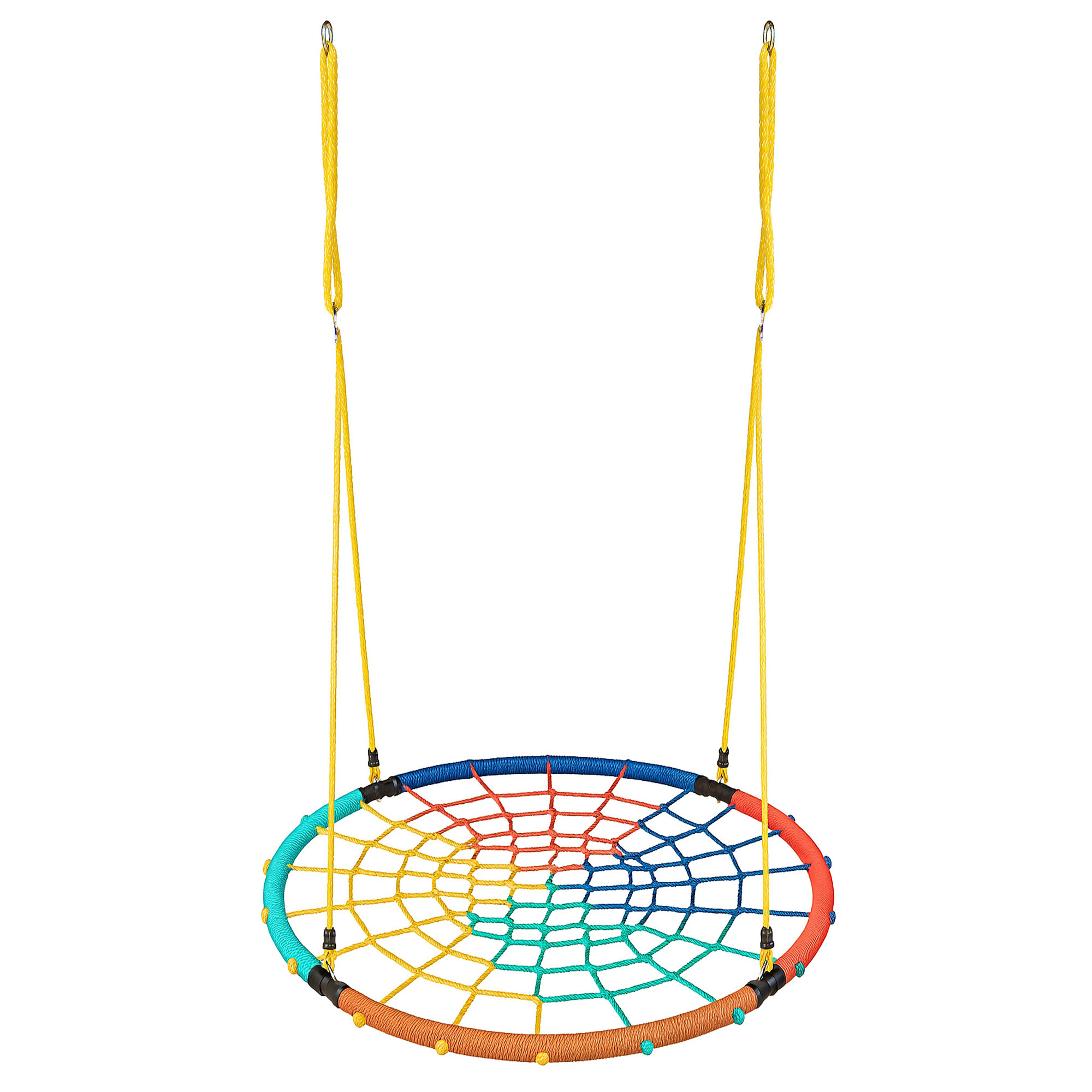 Hojdací kruh s priemerom 100 cm je dostatočne veľký na to, aby sa na ňom mohli hojdať dve deti súčasne.nosnosť krúžku je 150 kg.