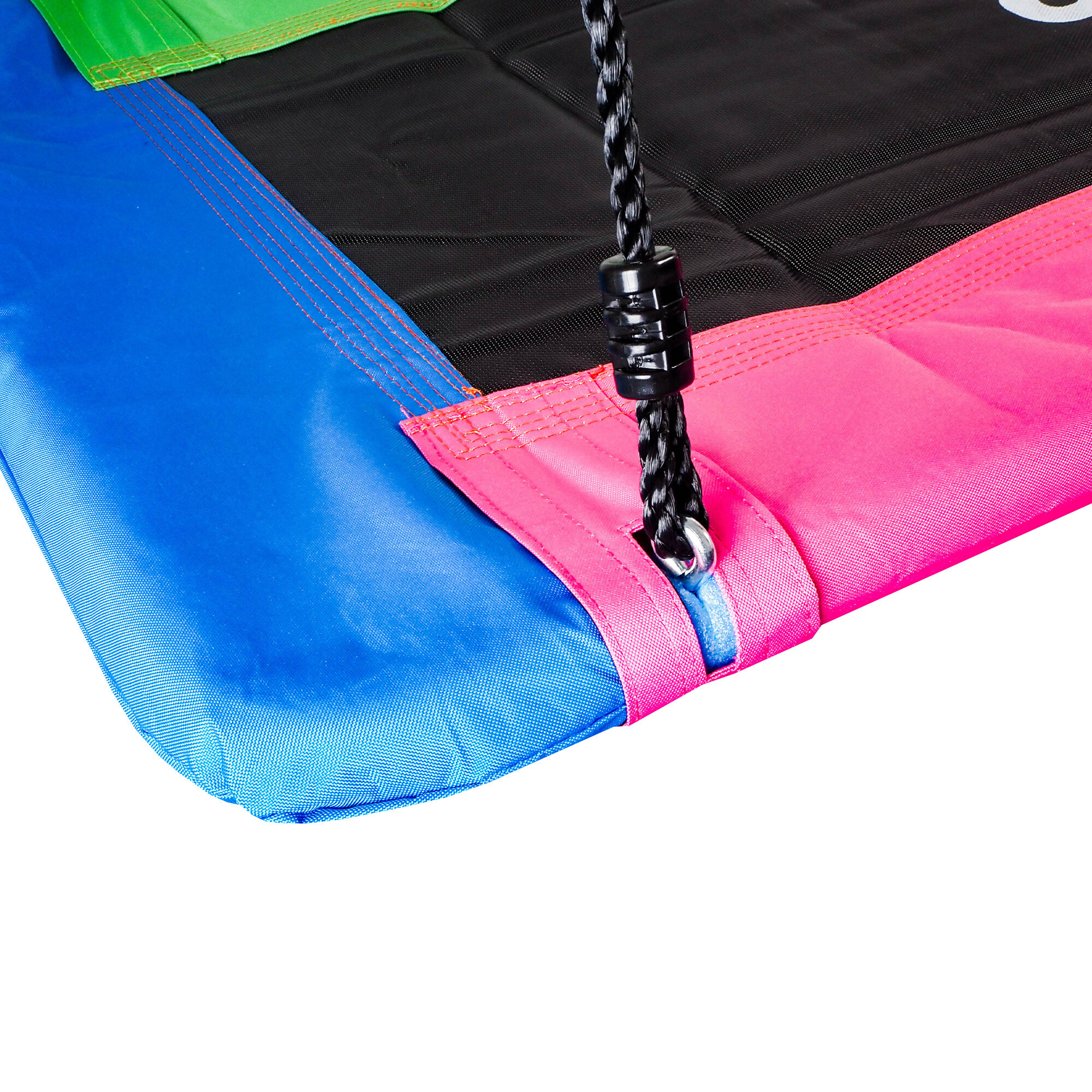 Táto tkanina je nielen pevná, ale aj príjemná na dotyk, čo zaisťuje maximálny komfort pri hojdání. Vďaka svojej odolnosti proti UV žiareniu a vode je ideálny na vonkajšie použitie, či už na záhrade, terase alebo balkóne.Hojdací obdĺžnik je vybavený silnými lanami s priemerom Ø 10 mm a dĺžkou 130 cm. Tieto laná sú navrhnuté tak, aby vydržali vysoké zaťaženie a poskytovali maximálnu bezpečnosť. S nosnosťou až 150 kg je tento hojdací obdĺžnik vhodný pre deti aj dospelých.