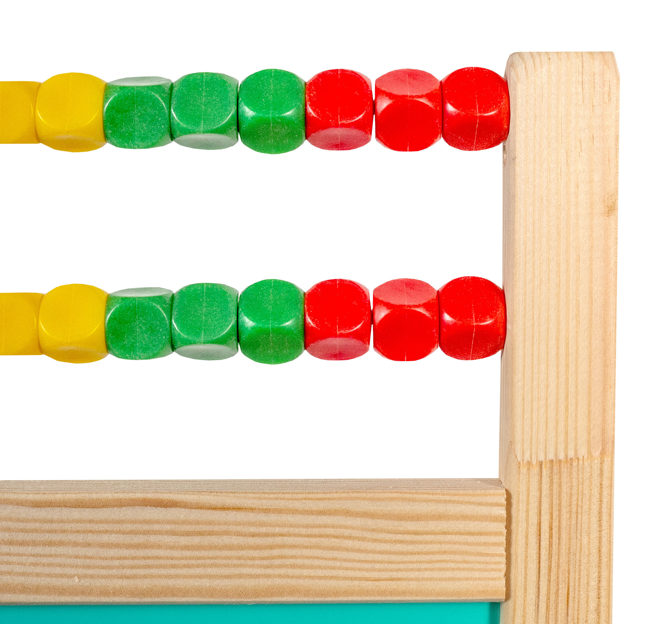 Môžete kresliť na obe strany tabule, na jednu stranu fixkou a na druhú kriedou.hracia doska obsahuje aj dvojriadkové počítadlo, ktoré obsahuje 15 farebných guľôčok v každom riadku.
