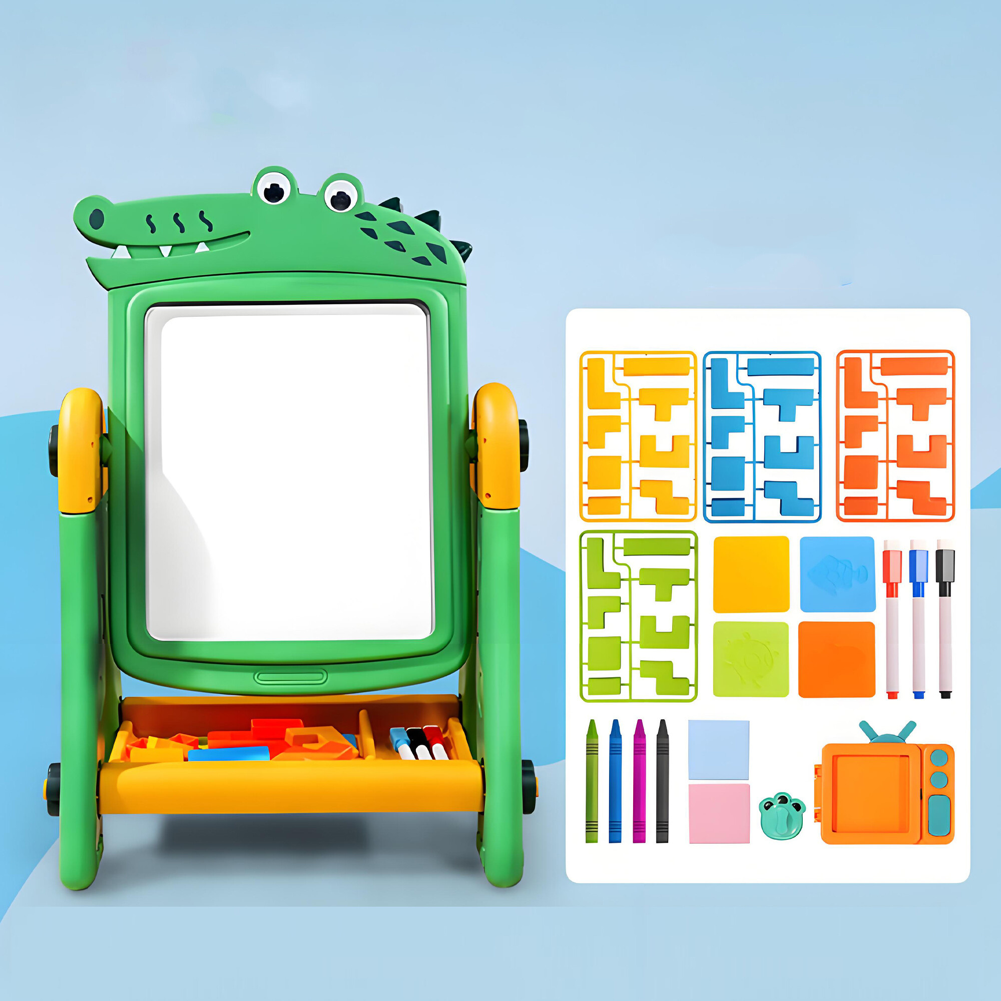 Aga4Kids Detská tabuľa na fixky prichádza s bohatou sadou príslušenstva, ktorá zaisťuje, že vaše deti budú mať všetko, čo potrebujú pre okamžitú zábavu - 4x voskovka, 3x fixka, 1x hubka na mazanie, papieriky, obkresľovacie tabuľky a tabuľa.