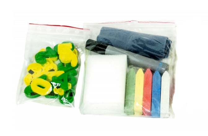 - Sada obsahuje - otočný stôl, 5 farebných kried, 1 fixku, 1 rolku papiera (15 m), magnetické písmená, počítadlo, 1 hubku, 1 handričku