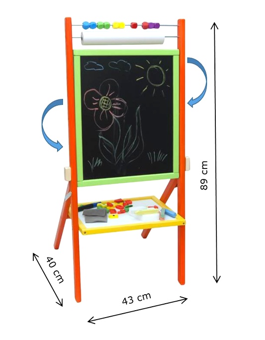 Otočná magnetická tabuľa pre deti s úložnou policou, počítadlom a vymeniteľnou 15-metrovou rolkou papiera, od spoločnosti Aga4Kids.