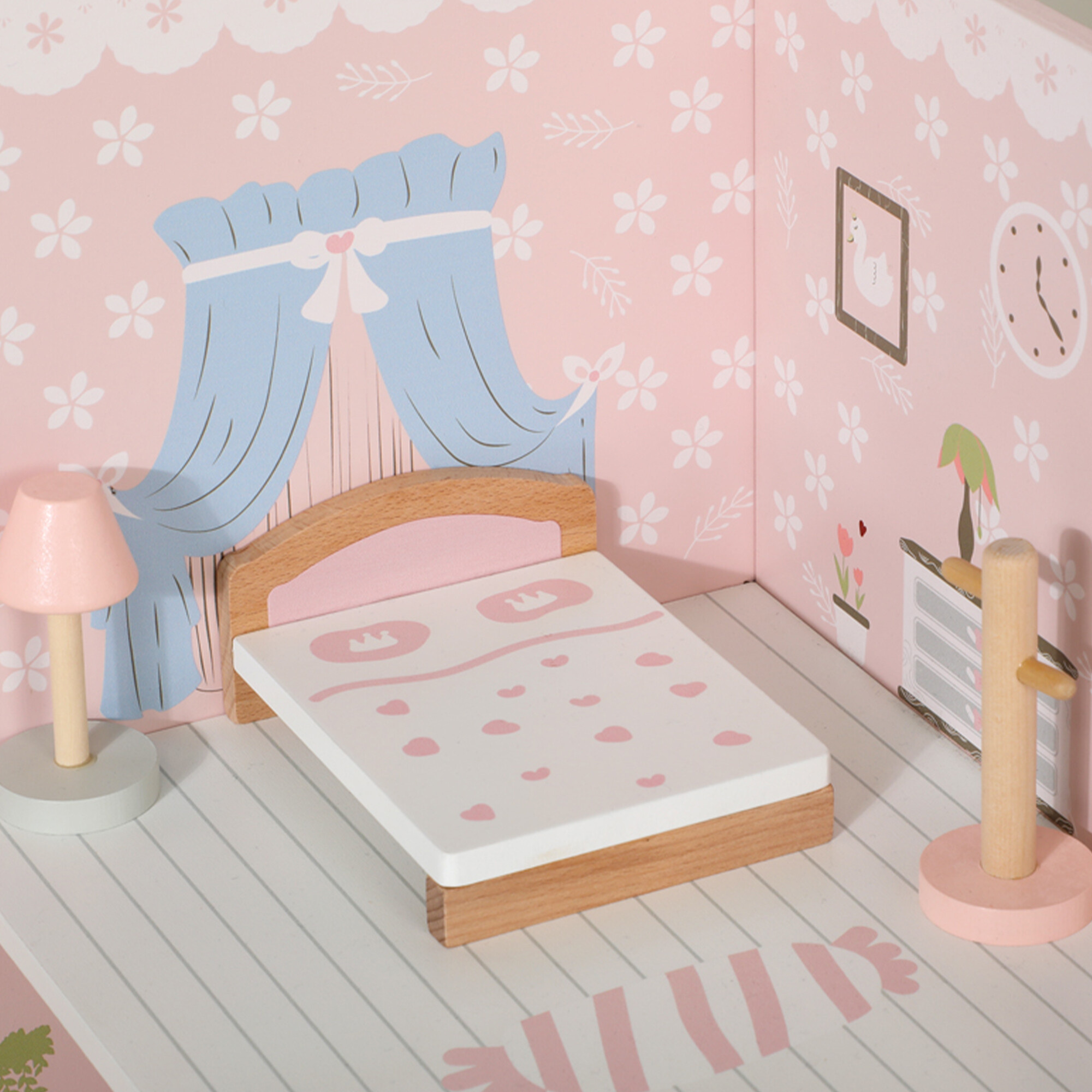 Tento nádherný drevený domček je ideálnym miestom pre všetky obľúbené bábiky a poskytuje nekonečné hodiny zábavy. S jeho detailným dizajnom a kvalitným spracovaním sa stane nepostrádateľnou súčasťou každej detskej izby.