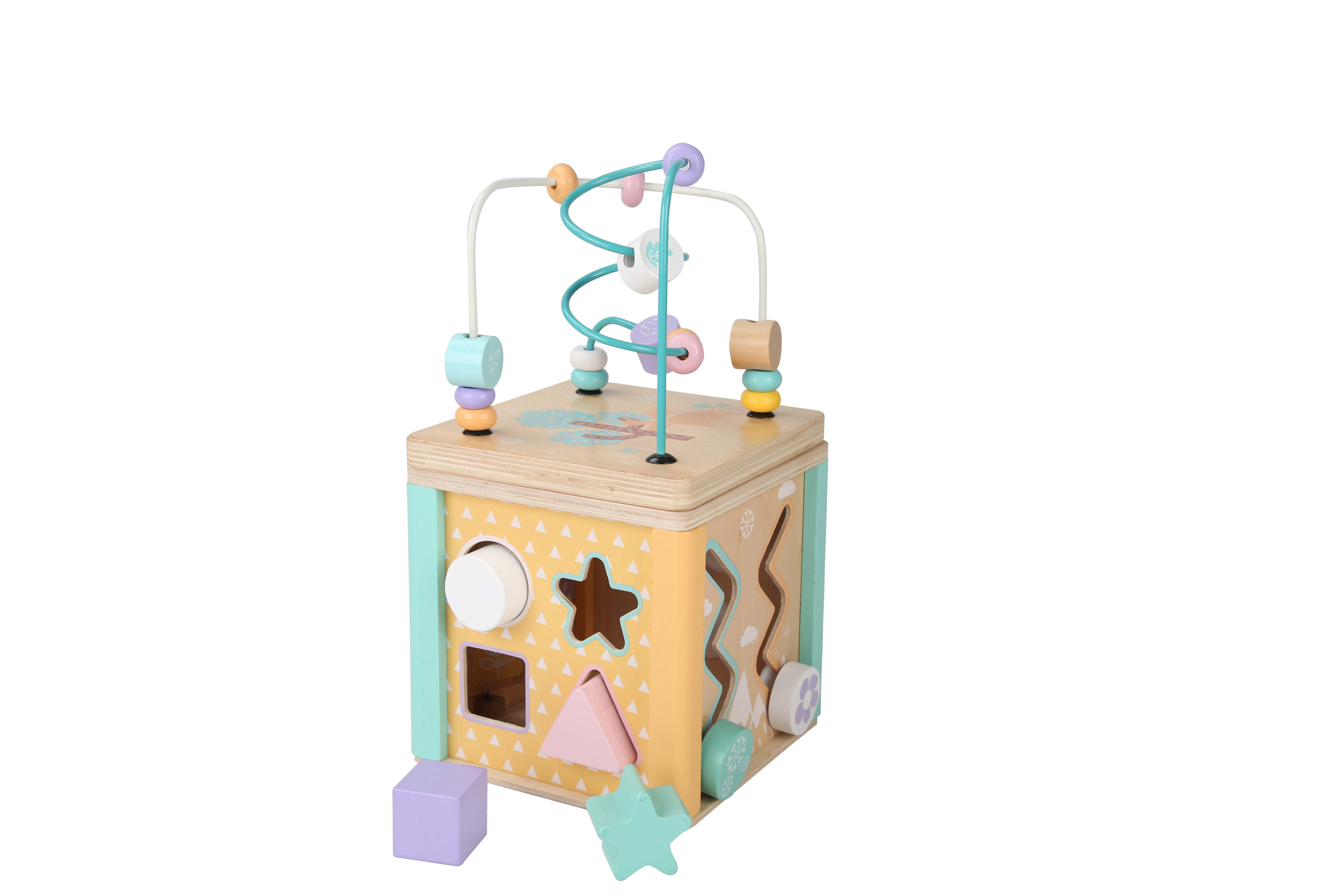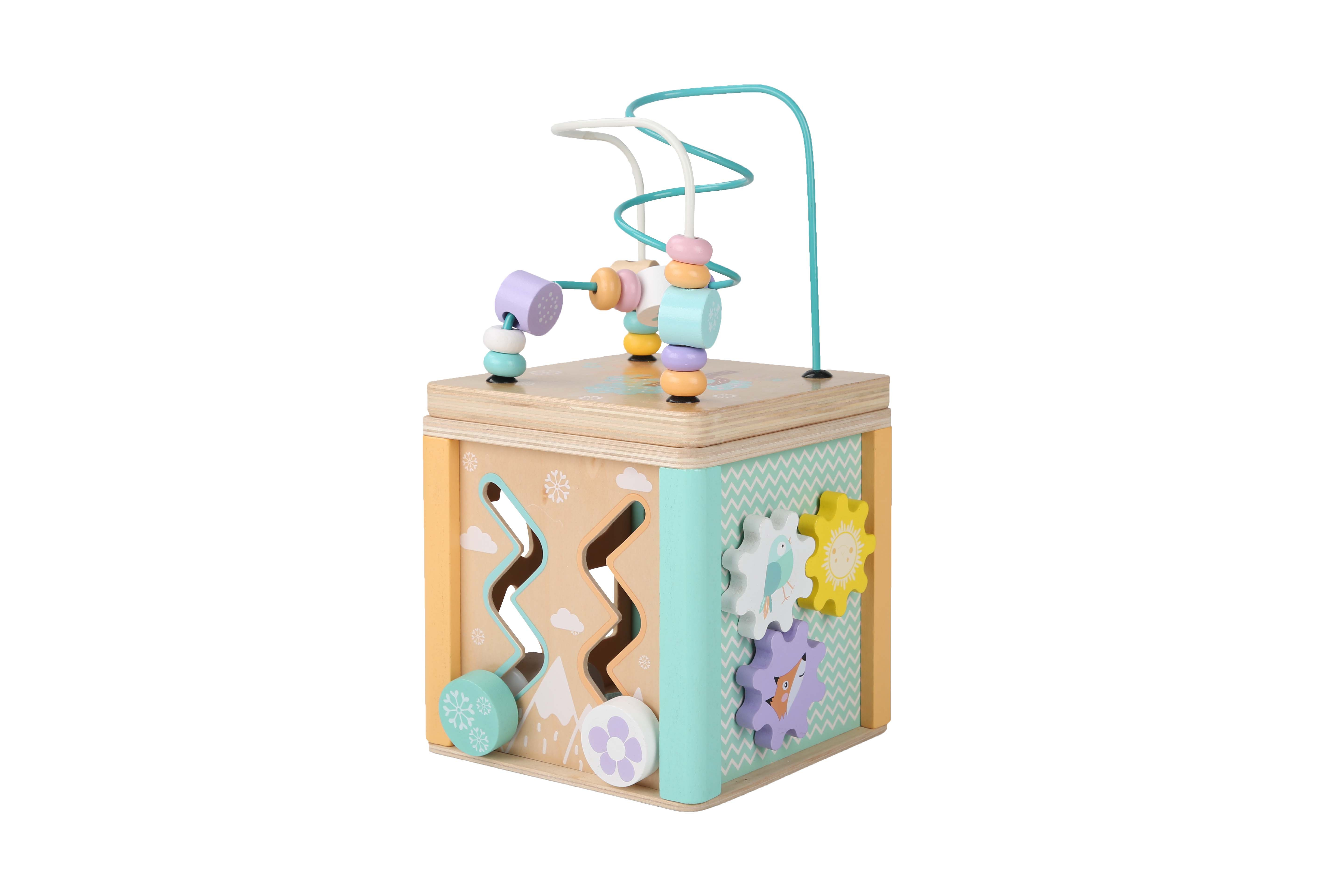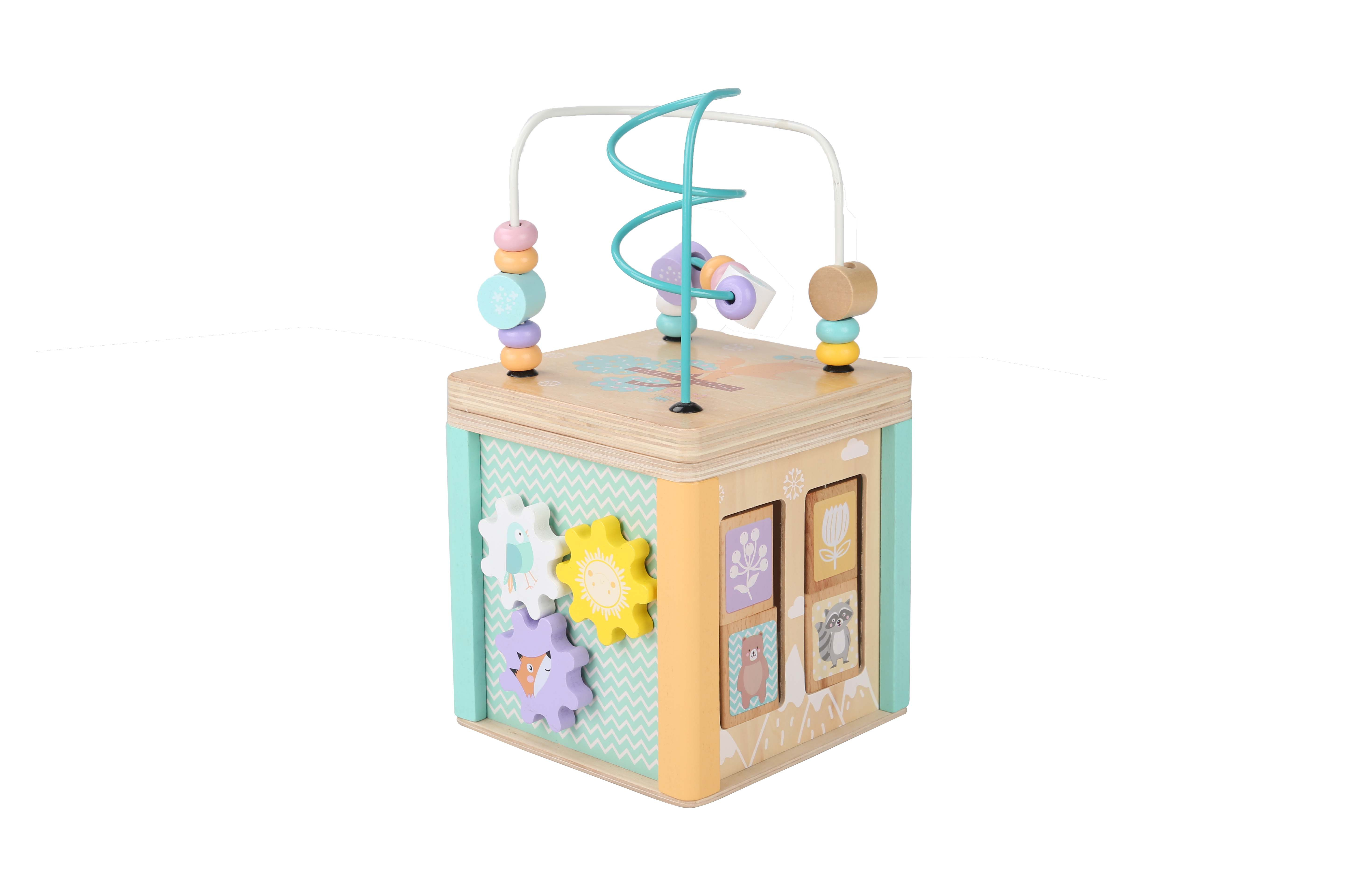 Táto farebná drevená interaktívna vzdelávacia kocka je kvalitná drevená hračka pre malé ruky.