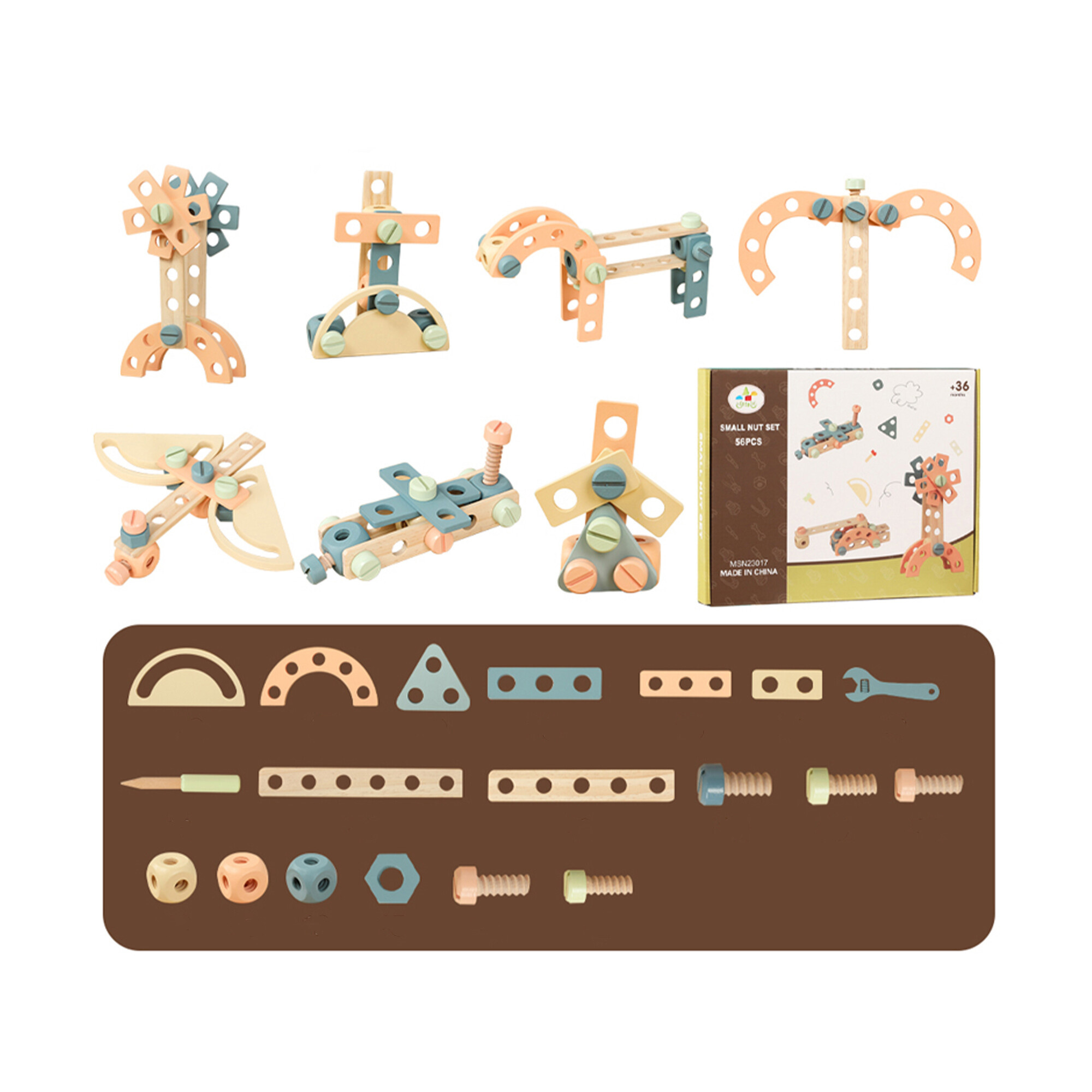Stavebnica je vyrobená z vysoko kvalitných drevených materiálov.Každý diel je starostlivo spracovaný s ohľadom na zaoblené rohy a hrany, aby sa minimalizovalo riziko zranenia.