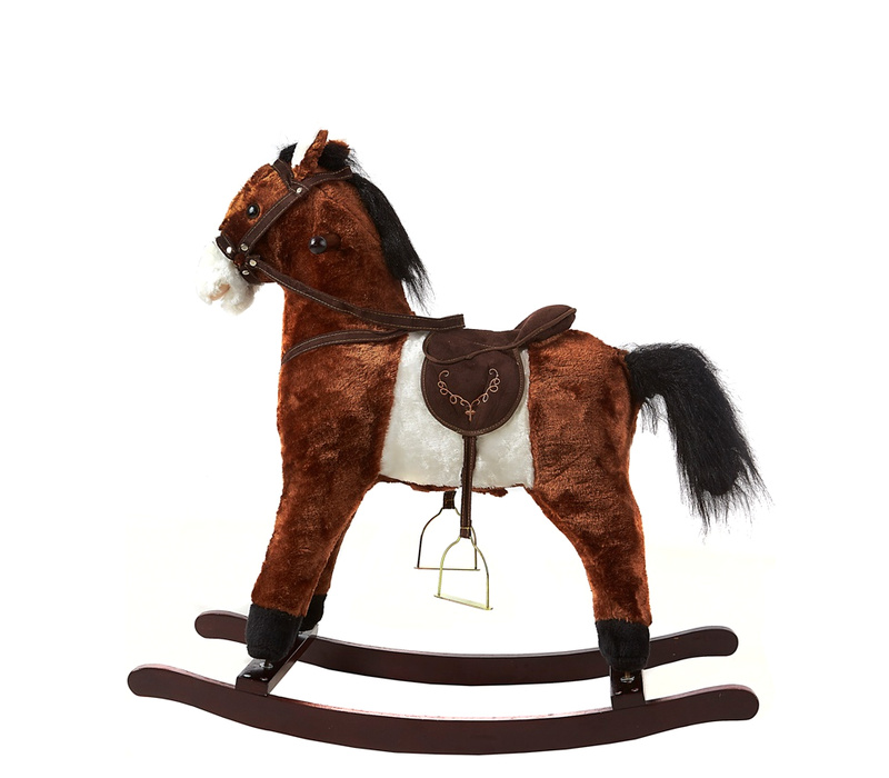 - Hračka má sedlo so strmeňmi, uzdu a drevené rukoväte