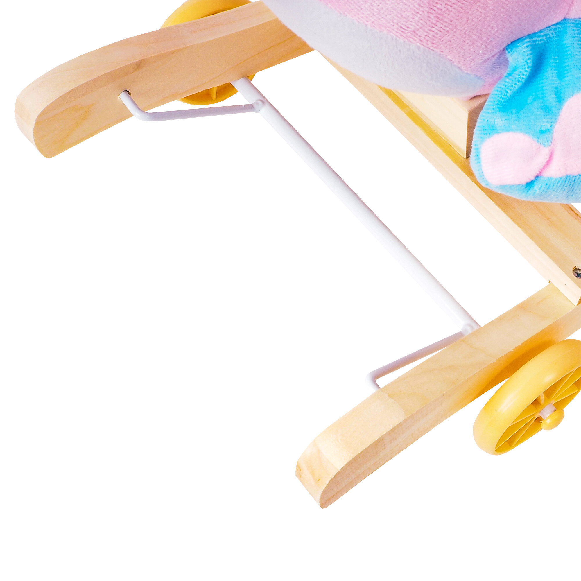 Pevné drevené lišty a rukoväte pomáhajú dieťaťu udržať rovnováhu. Preklopením jednoduchého mechanizmu na lištách vysuniete kolieska, čím v sekunde zmeníte hojdačku na jazdiaceho sloníka.