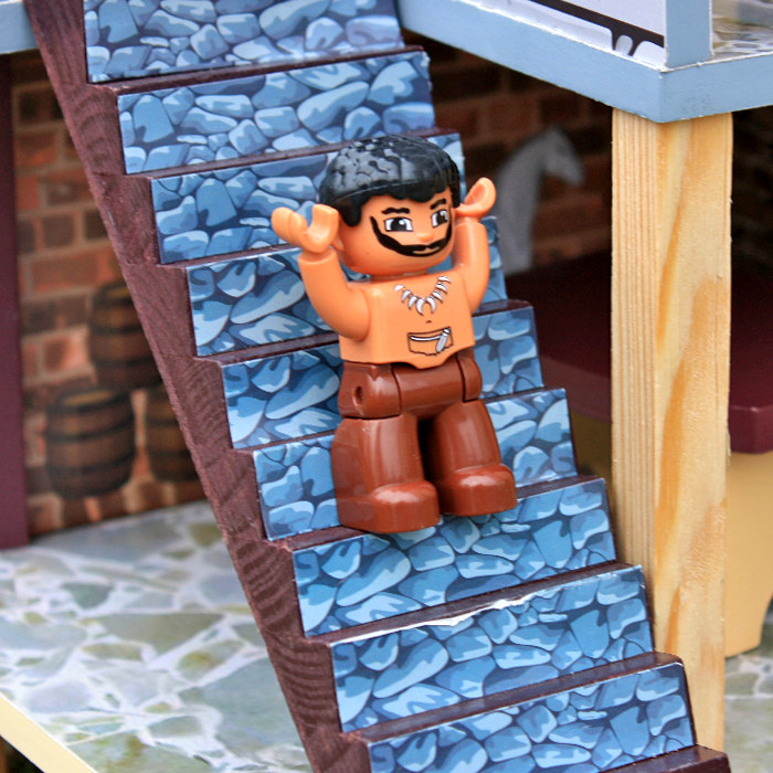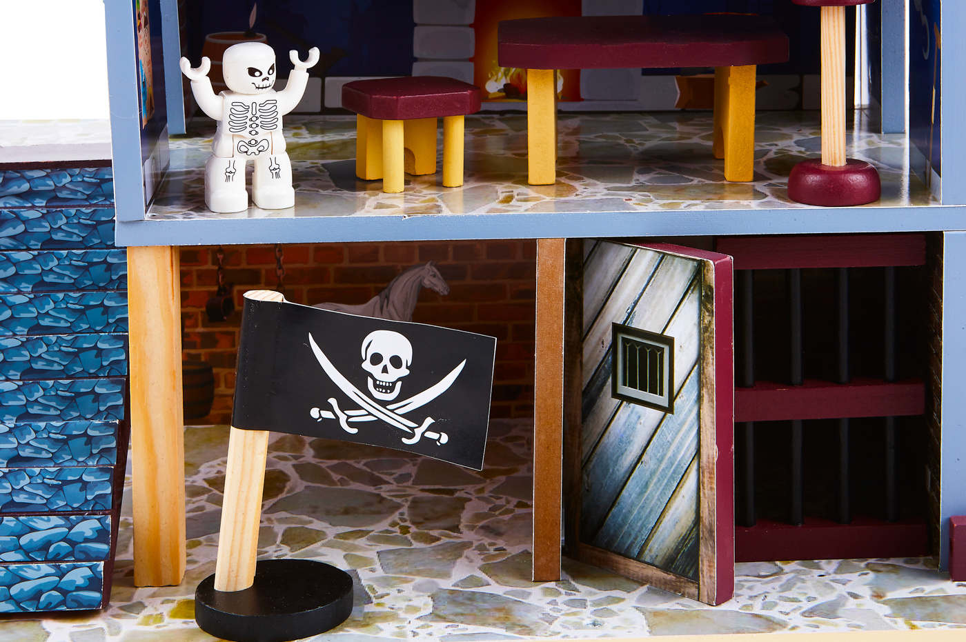 - Nechýba väzenská cela, strážna veža s vlajkou a dvoma delami a prístav pre pirátsku loď