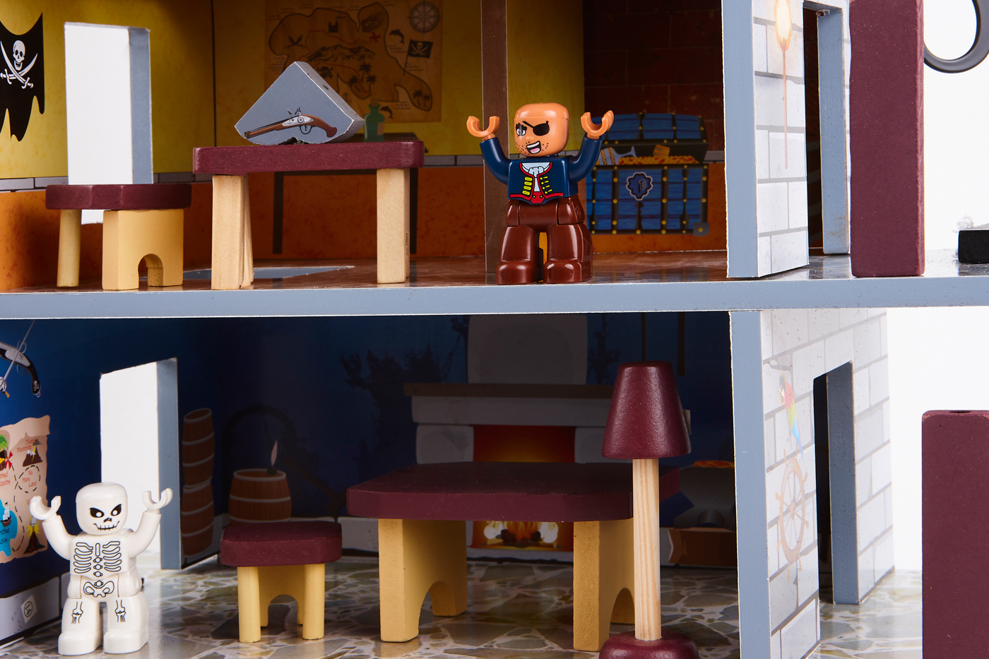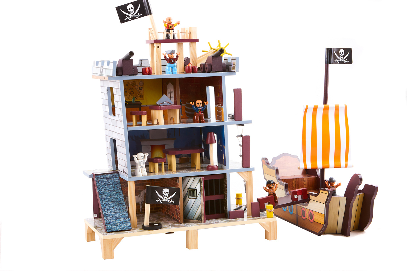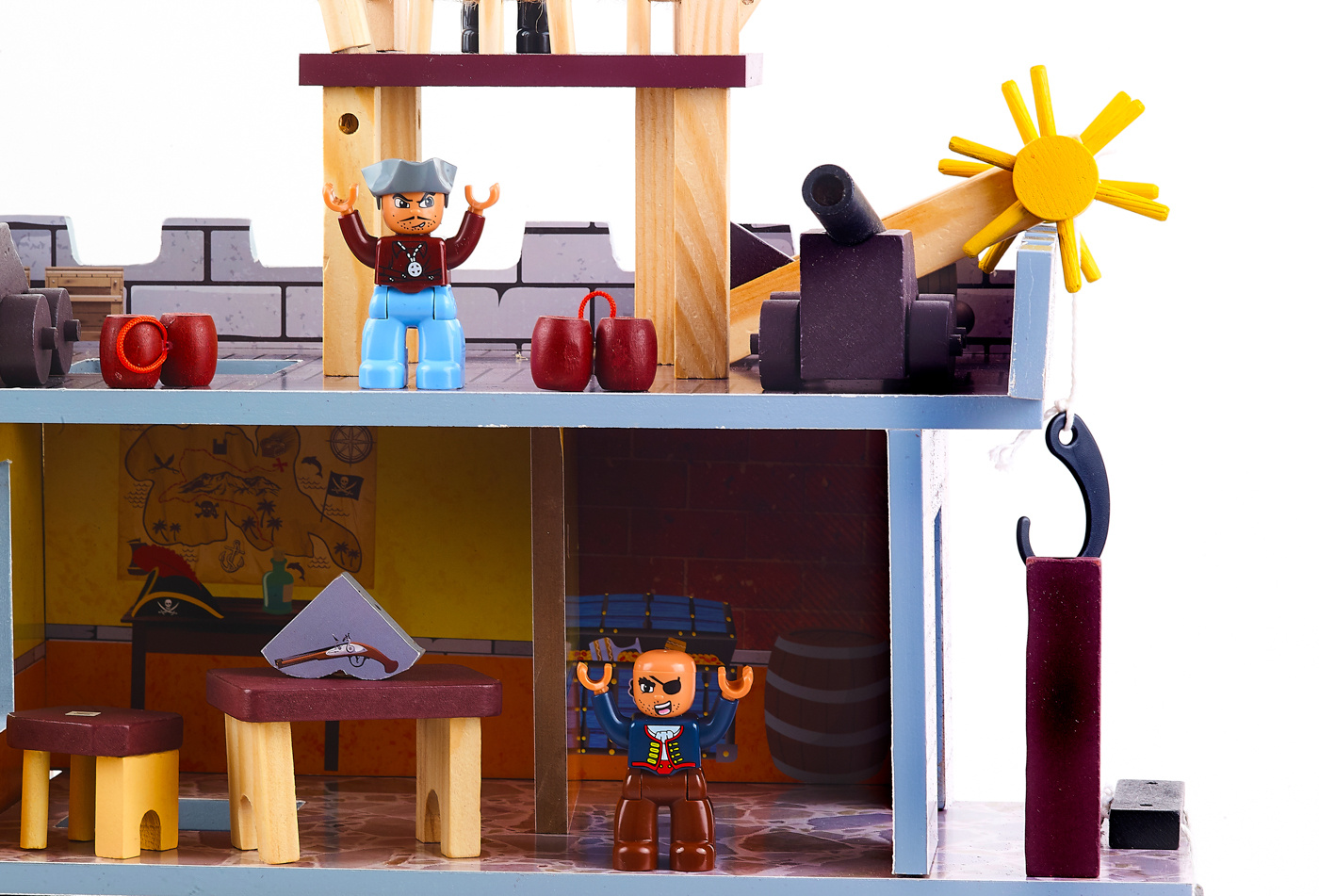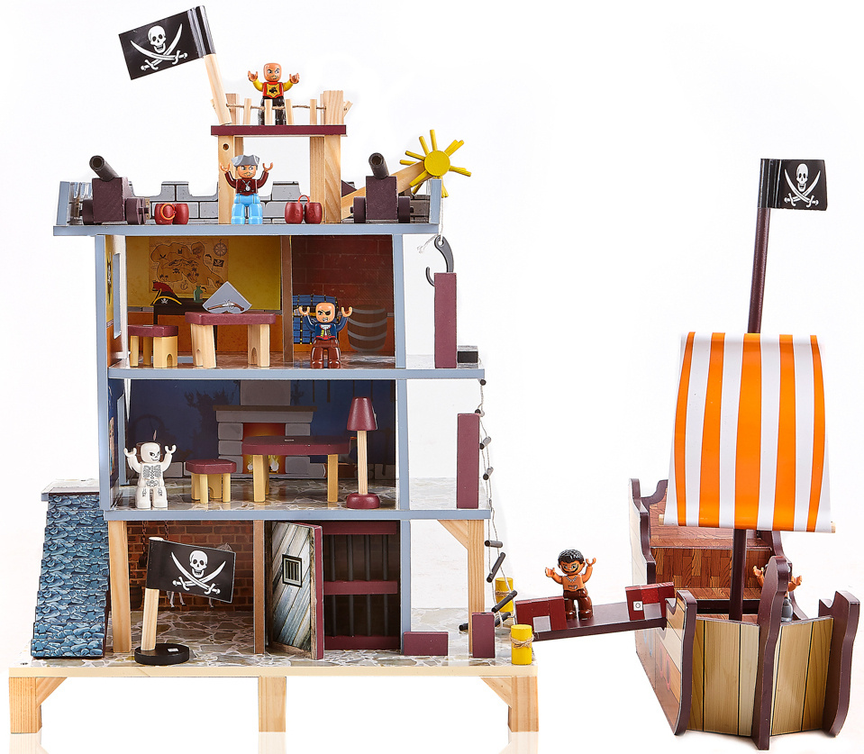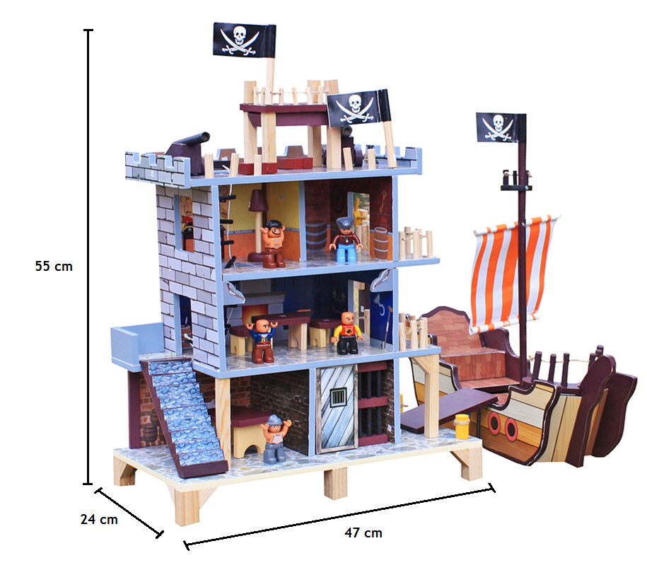 Tento pirátsky hrací set sa skladá z dvoch základných častí, veľkej pirátskej lode a prieskumnej vyhliadkovej veže s bohatým príslušenstvom.